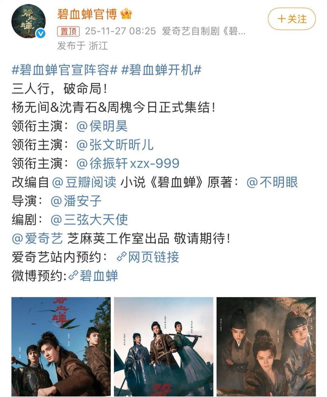 侯明昊、张文昕、徐振轩主演的碧血蝉官宣阵容了,这个海报看起来质感不错哎你期待这部