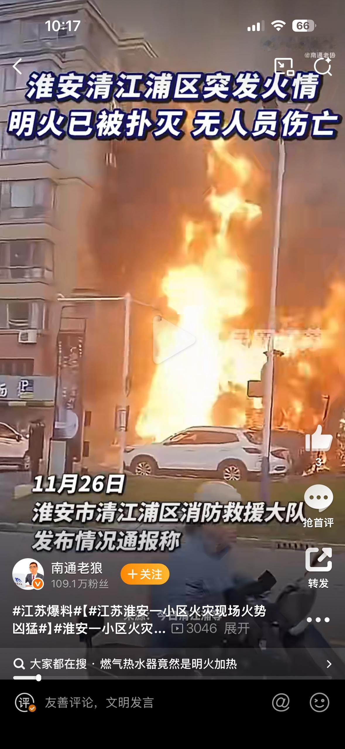 冬季干燥,注意防火安全,愿人人平安!江苏淮安一小区火灾现场火势凶猛
