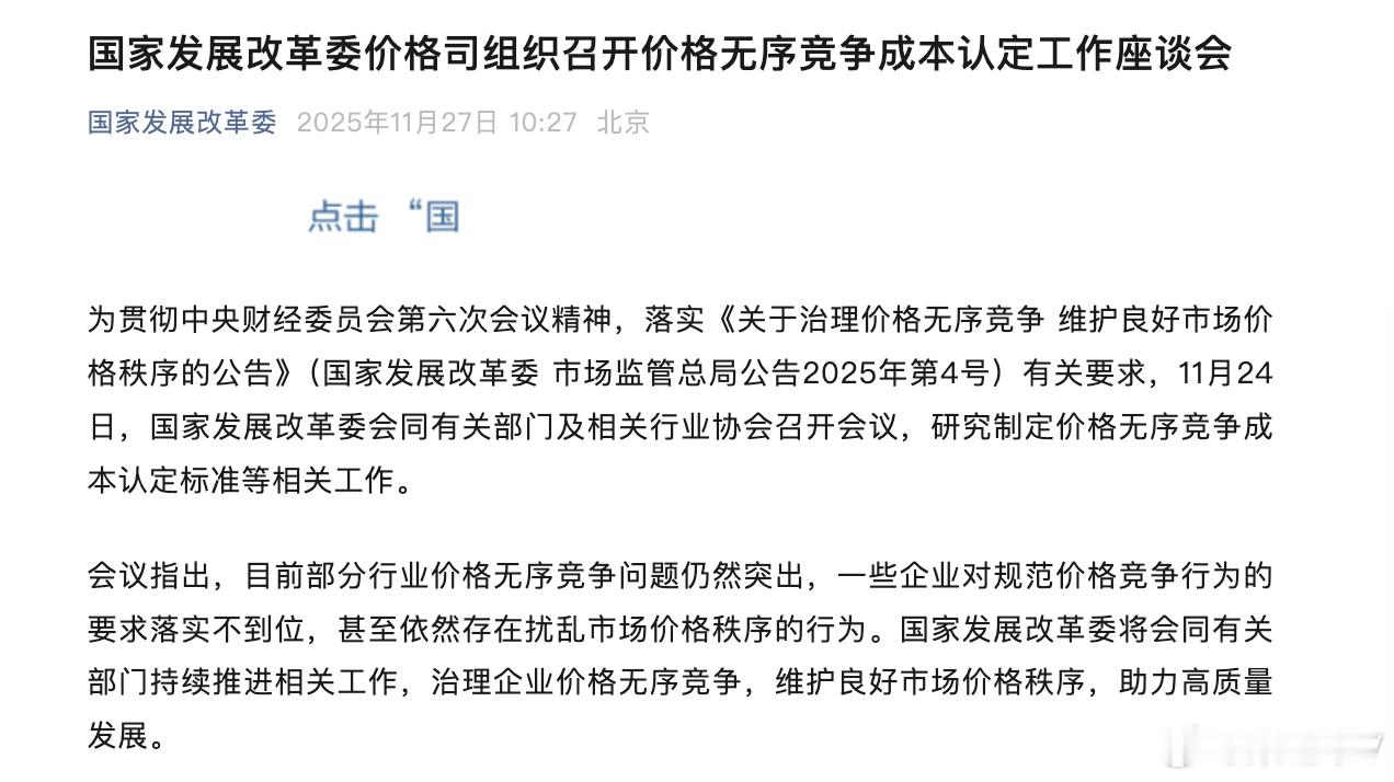 国家发展改革委价格司组织召开价格无序竞争成本认定工作座谈会汽车行业反内卷桑之未汽车行业观察