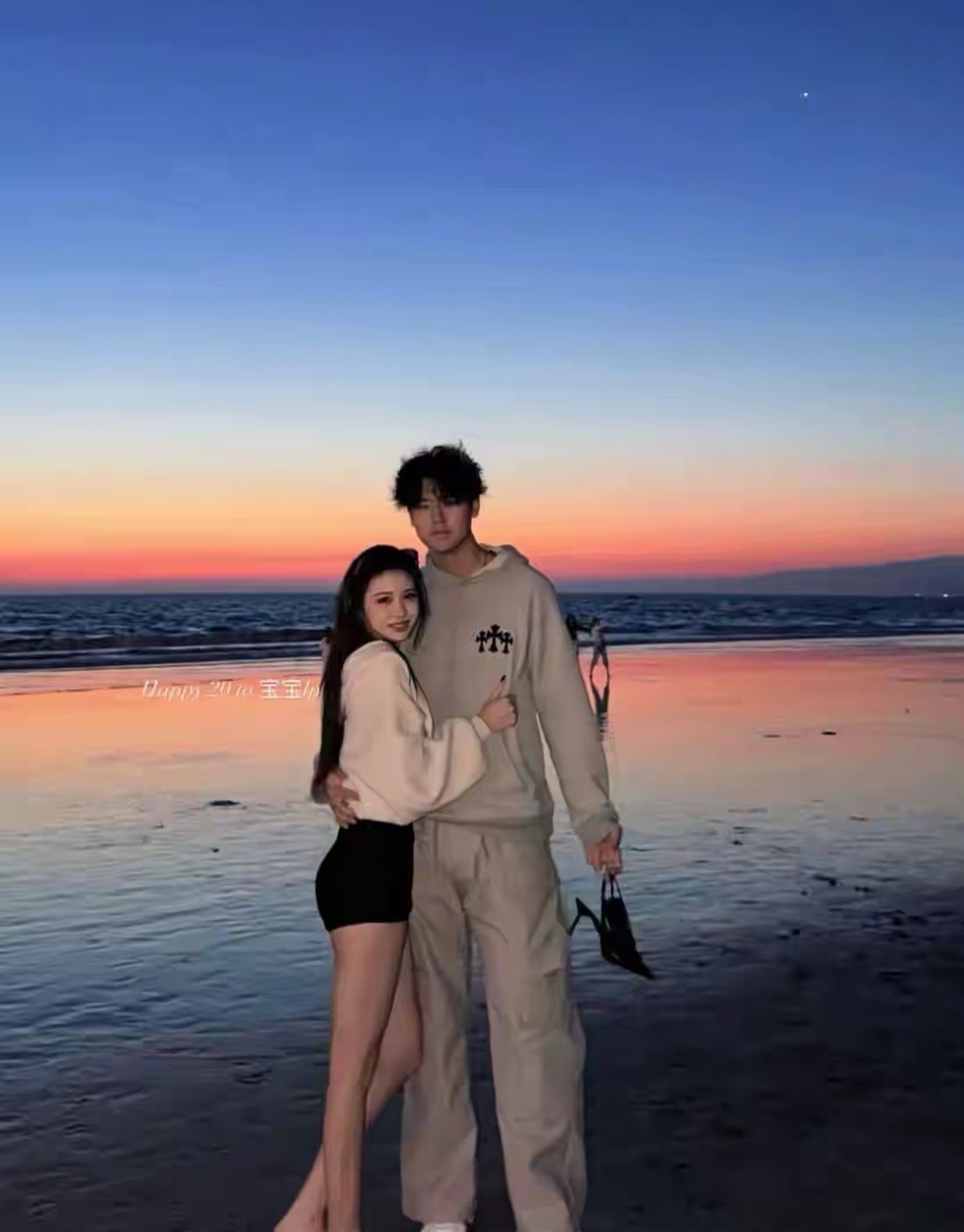 11月25日,汪峰大女儿小苹果(汪曼熙)20岁生日,她在社交平台晒出一张和帅气男生的拥抱合影,疑似公开恋情。照片中,小苹果依偎在男生身边,男生一手搂着小苹果腰,一手提着小苹果的高跟鞋,两人在海边相拥,画面浪漫唯美。小苹果脸上面带甜笑,看起来很是甜蜜。小苹果披着一头长发,身穿白色卫衣搭配黑色热裤,大秀美腿,身材高挑苗条的她,一双纤细长腿十分抢镜。小苹果继承了妈妈葛荟婕的高颜值,五官精致漂亮,真的很美。男生身穿灰色卫衣和长裤,身材高大,看起来至少有185以上,五官立体,模样帅气。两人看起来男帅女美,十分养眼。