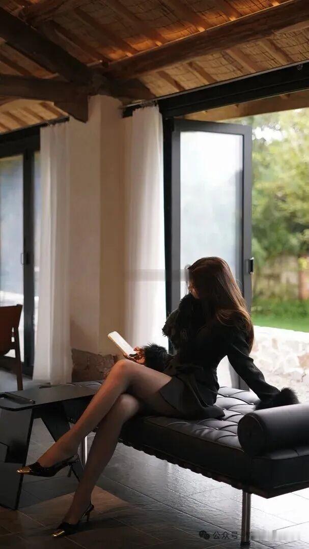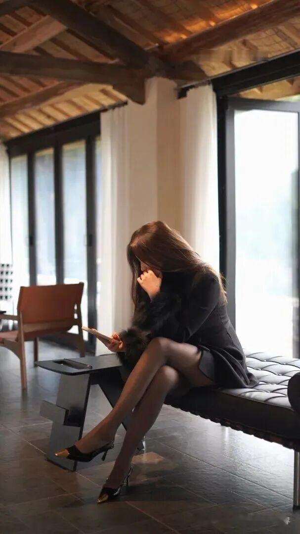 都市黑衣女郎,优雅坐立间尽显风姿