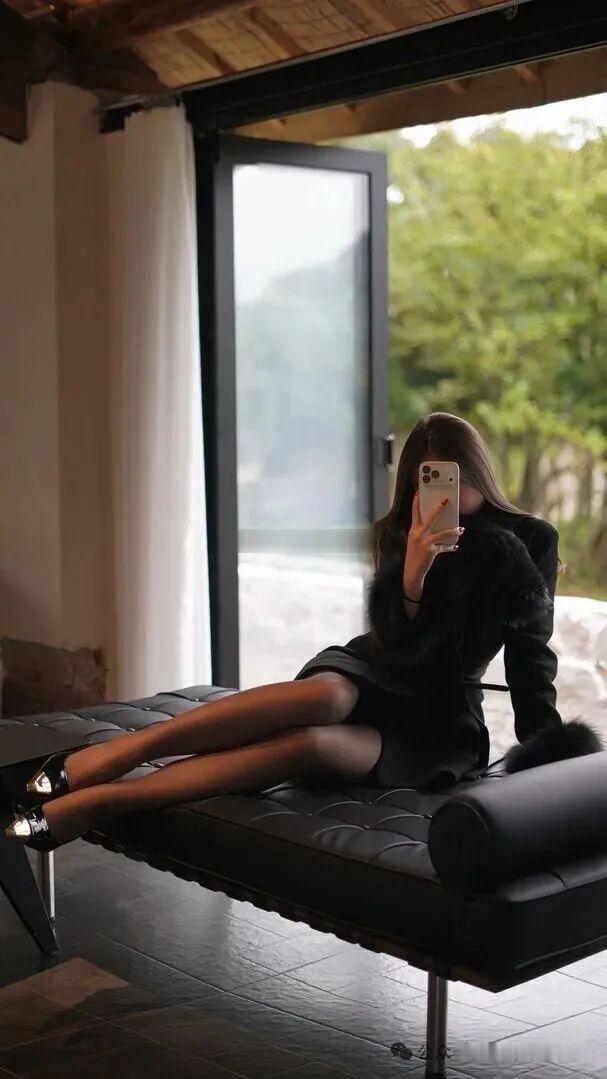 优雅黑裙,都市时尚,自拍时刻