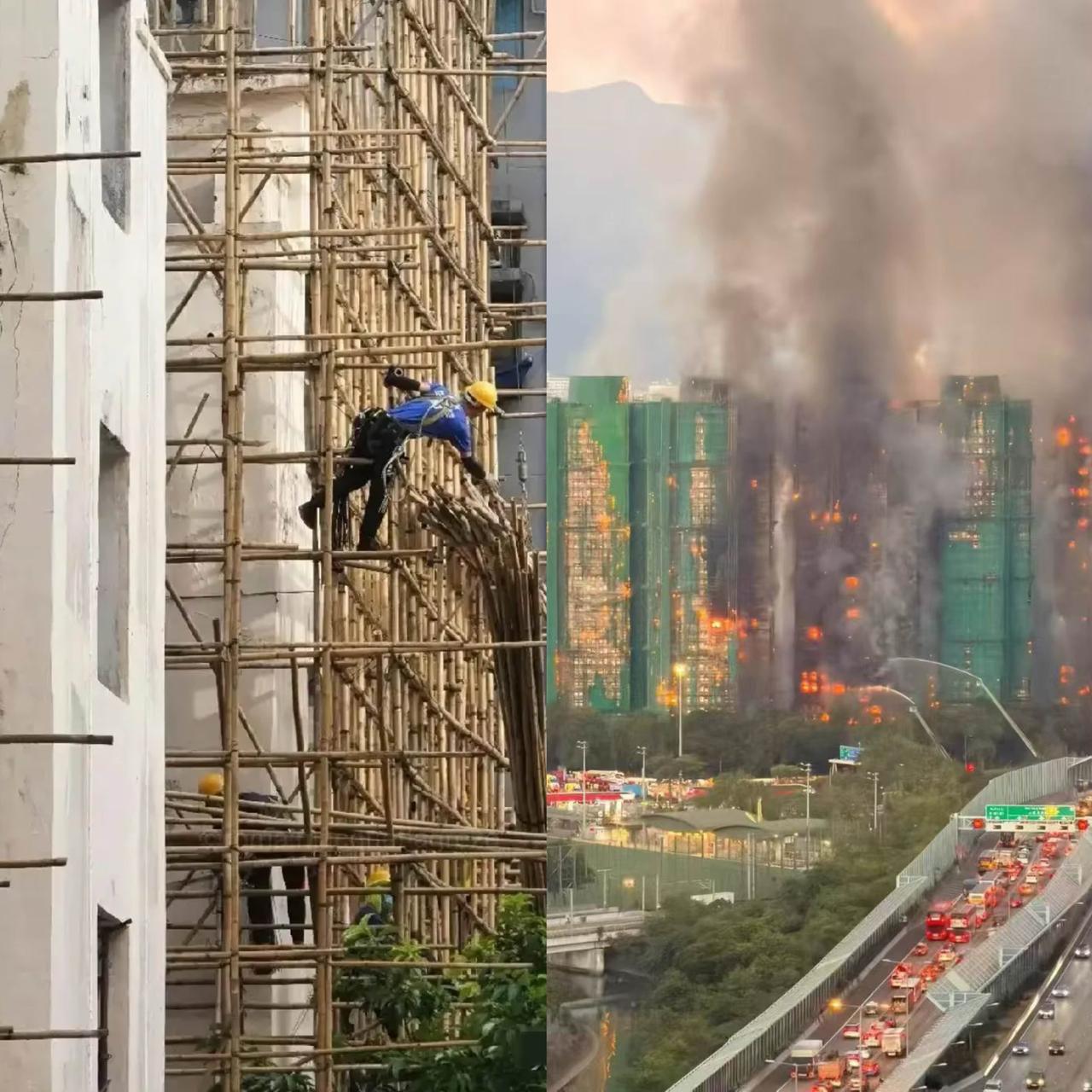 真相揭秘! 香港竟还在用竹制脚手架, 不是落后或用不起钢筋,而是因为有 一个竹子协会在背后推动, 他们觉得竹子成本低、 搭建方便还环保。 而部分工人也担心 金属脚手架会抢饭碗。 但话说回来, 竹子易燃又易老化, 安全可是个大问题。 内地早就淘汰了, 香港这次事件后, 估计也得重新评估竹制脚手架的未来了。