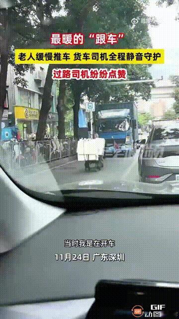 广东深圳一处街头,一名男子开车回家时,看见旁边的车道上,一位老人缓慢地推着车,上面装载了各种废品,而老人的身后跟着一辆货车,但司机并没有鸣笛催促,而是全程静音,默默地守护着老人。 网友看完这段视频,都觉得这位货车司机的做法真是太暖心了,这位老人以捡拾废品为生,她不是故意要占用车道,而是因为她年龄大了,本身就走得比较缓慢。 而司机师傅就是体谅到这一点,所以才会刻意放慢车速,并且全程静音地跟在后面,可见他是一个内心善良的人,这样做都是为了老人考虑,否则如果他没有同理心直接鸣笛催促的话,老人会更加狼狈。 司机师傅用他的小小善举,让人感受到了深圳是一个有爱的城市,同时也让人相信,赠人玫瑰,手留余香,在帮助别人的同时,自己也能收获快乐,这就是正能量在传递的作用。大家怎么看呢?