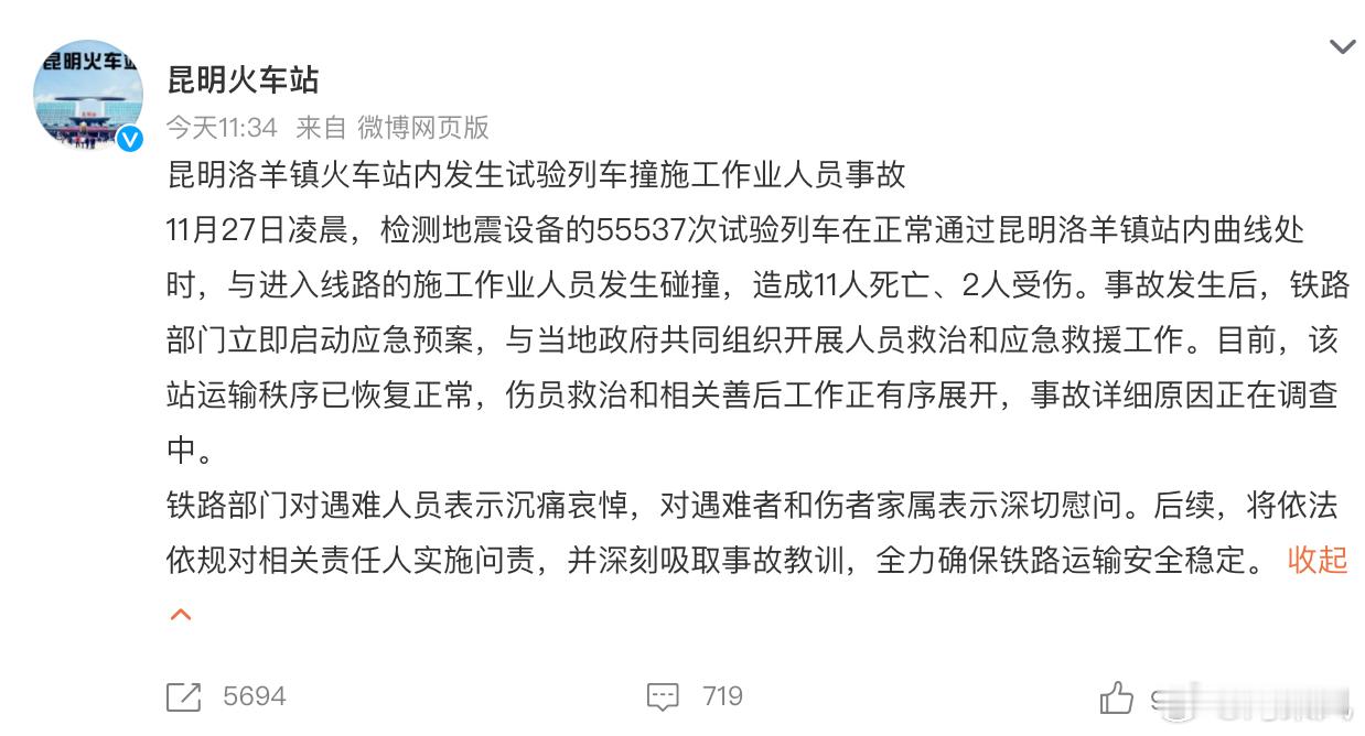这是人祸,管理之责,多事之秋,愿君平安。昆明一火车站试验列车撞人致11死