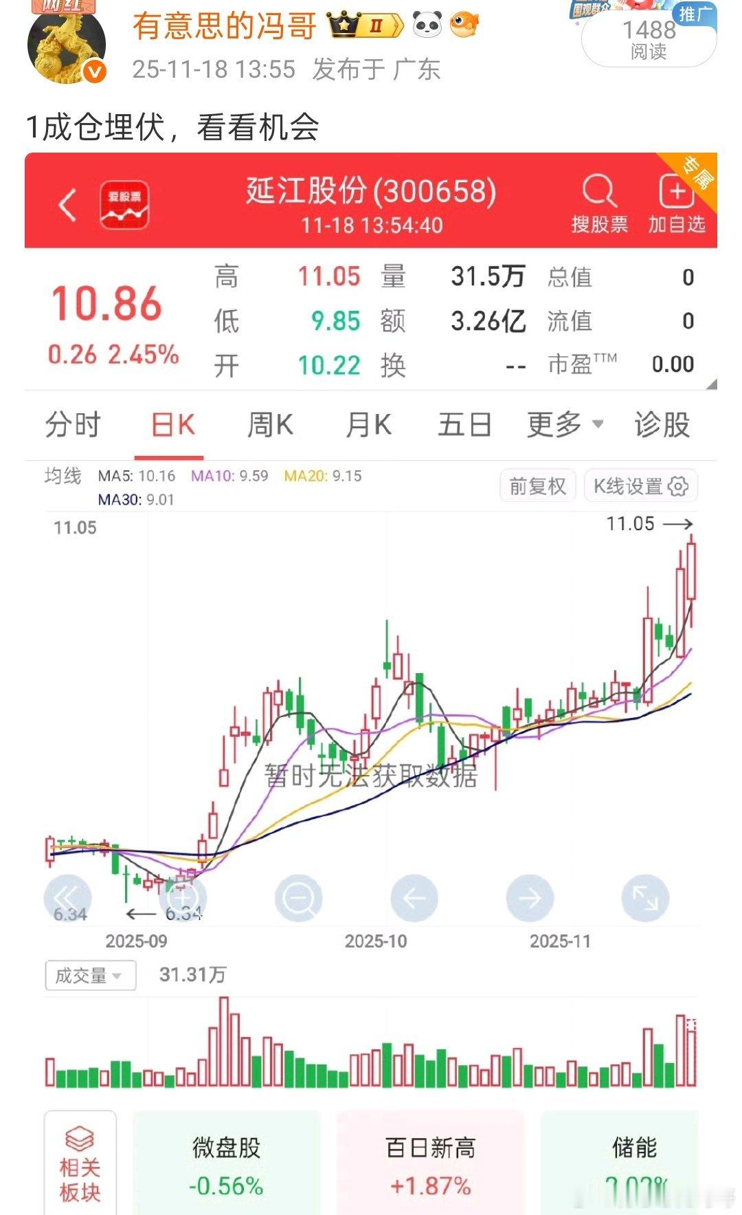 看图说话,埋伏的延江股份终于开始浮盈了,这里看看能否突破新高,自行把握好高抛低吸