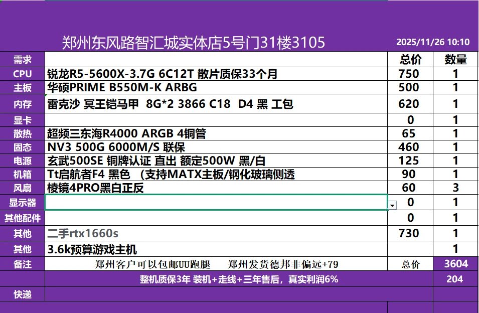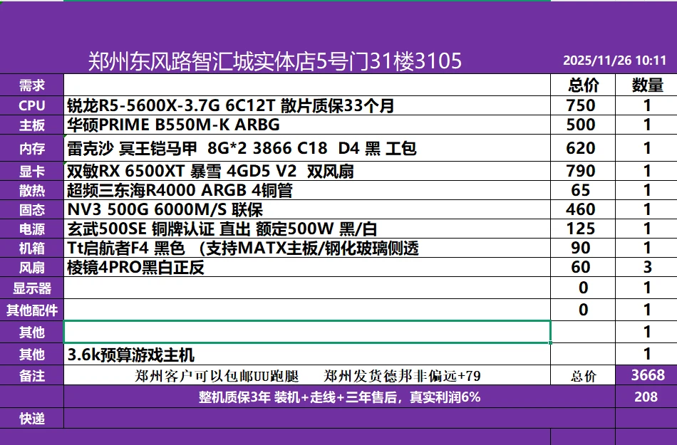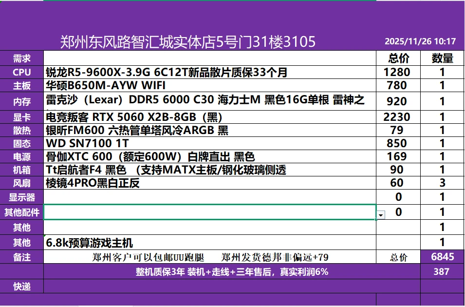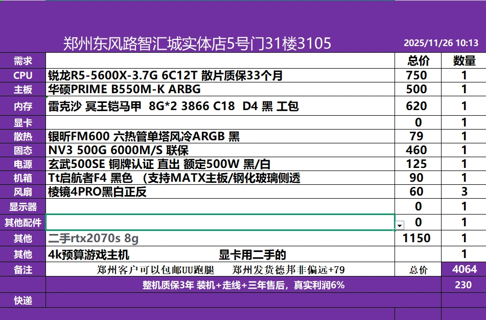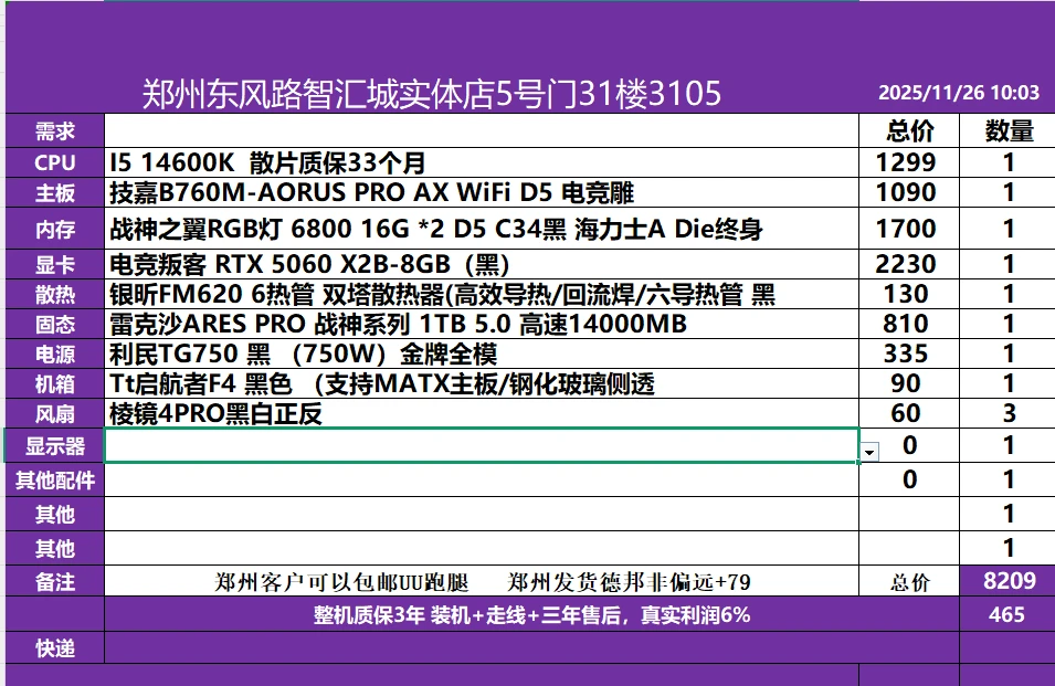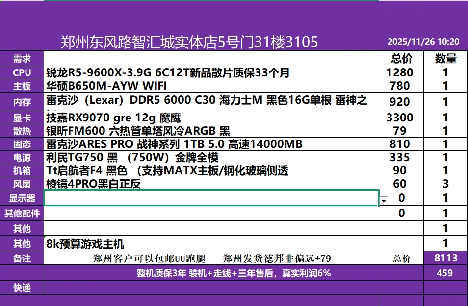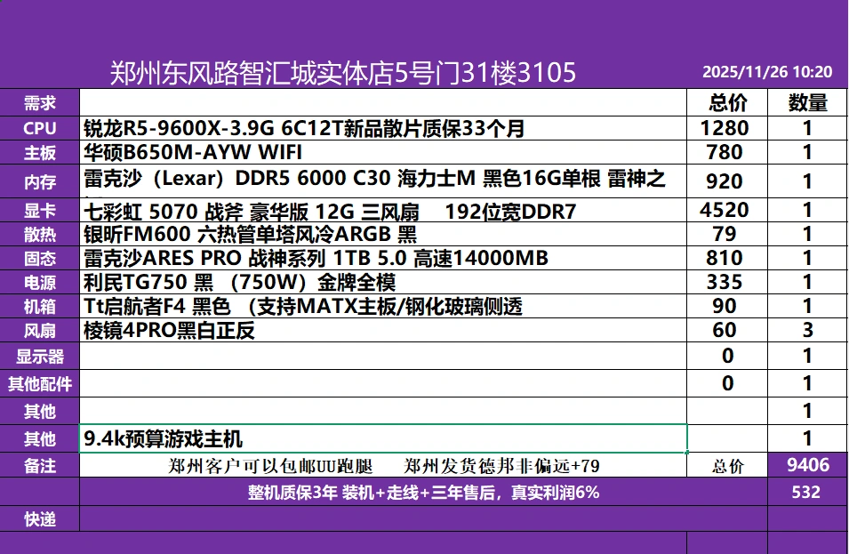 按今天当天报价做的配置单,装机的可以参考,从3k-9k多不等。。。内存溢价,可以先用单根内存过渡,打游戏完全没问题。。2小时可装好发货,不用等28天