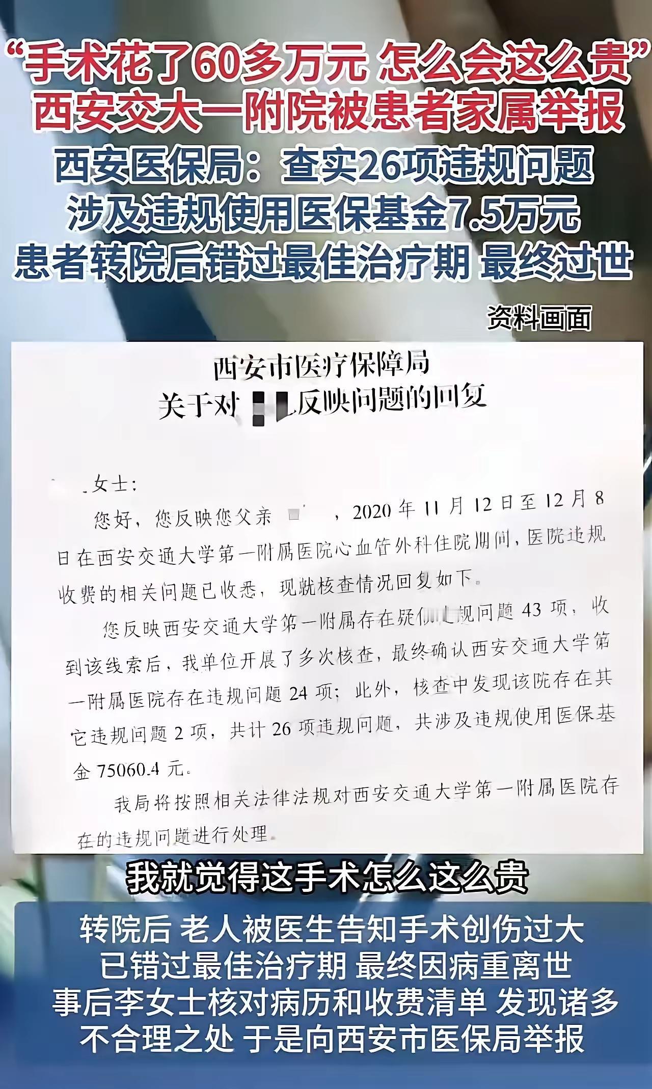 【60万心脏账单惊现“会阴清洗34次”!交大硕士怒撕医院遮羞布】 一张60万的住院结算单,把“心脏手术”变成了“心脏收割”。 46天,父亲从手术室出来,人救回来了,账单却差点把女儿逼进绝境。 交大硕士小梁(化名)用Excel拉完明细后,血压飙升: - 纱布:6000+元,平均每天130元,能绕地球半圈? - 会阴清洗:34次,平均1.4天一次,ICU里“最高礼仪”? - 动脉缝合器:一次手术用了7套,医院库存被父亲一人清空? 她把账单晒上网,48小时冲上热搜第一,网友一句话扎心: “心脏没停,钱包先停了。” 01 34次会阴清洗,到底洗了什么? 小梁调出护理记录: - 父亲术后第3天转入普通病房,意识清醒,能自主排尿。 - 但会阴清洗项目从术后第1天一直持续到出院,连“女性会阴冲洗液”都出现在男患者账单上。 - 医院解释:预防尿路感染。 网友神评:按这个频率,护士比家属还熟患者身体。 02 6000元纱布,是按“块”还是按“斤”? 小梁把纱布用量换算成面积,能铺满一个篮球场。 医院耗材科回应:进口止血纱布单价高。 但同款纱布在电商平台零售价仅为医院报价的1/5。 业内人士爆料:高值耗材加成是医院“隐形收入”,有的科室年底靠这个发绩效。 03 医保“按项目付费”的灰色地带 - 心脏手术本应DRG打包付费,但医院通过“拆分收费”把DRG变成“拼积木”。 - 动脉缝合器、止血胶、特殊缝线……单独列项,医保不报,患者全自付。 - 一位离职医保办员工透露:医院有专门培训,教医生“合规”增加收费项目。 04 患者质疑=医闹? 小梁拿着账单找医务科,得到的回复是: “如果对费用有异议,可以申请第三方审核,但审核期间需先全额缴费。” 换句话说:质疑可以,先交钱。 小梁苦笑:“这不是医疗,是绑架。” 05 国家医保局已介入 6月25日,国家医保局回应: - 已派飞行检查组进驻涉事医院 - 重点核查“会阴清洗”“高值耗材”等高频争议项目 - 若查实违规收费,将追回医保基金并处以2-5倍罚款 06 普通人如何自保? ① 住院期间每天索要“一日清单”,发现异常立即申诉 ② 高值耗材使用前,要求医生出示《知情同意书》并注明价格 ③ 出院后15天内,可向当地医保局申请费用复核,免费 【评论区开麦】 你或家人遇到过“天价账单”吗? 留言说出你的经历,点赞前10名我们送医保专家一对一咨询! 60万账单合理吗 60万心脏账单疑云 会阴清洗34次合理吗