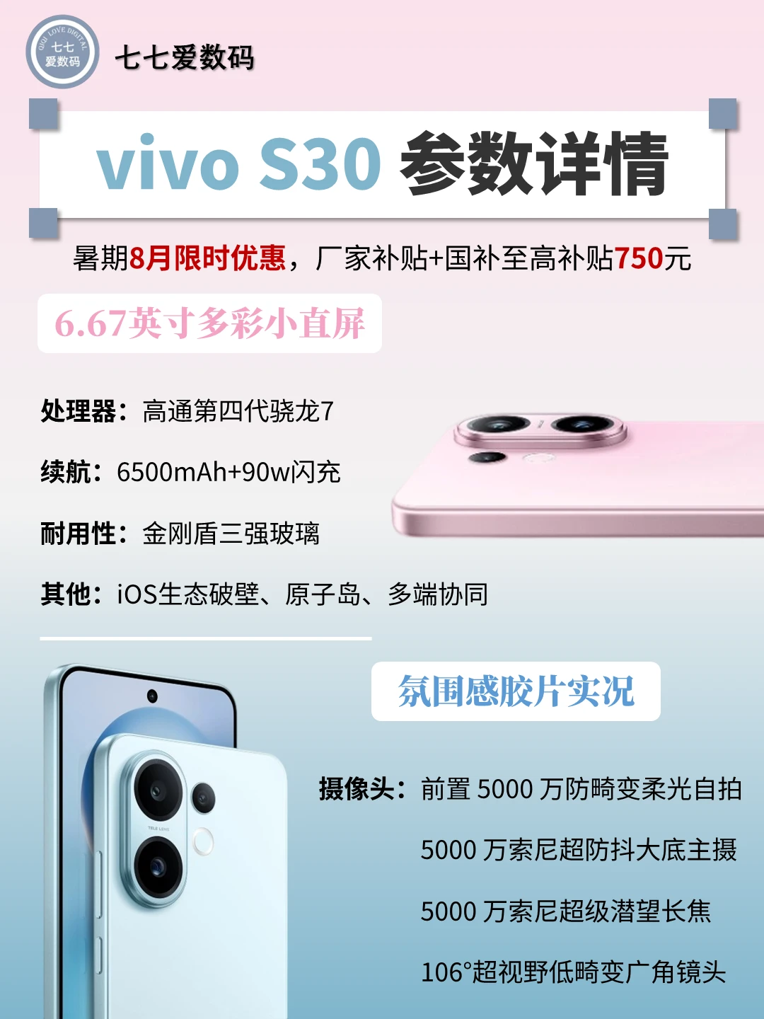 ✨ vivo S30是一款集颜值和拍摄一体的神仙机,拥有5000万超强三摄,自拍防畸变+超防抖主摄+潜望长焦,还有富士感满满的氛围感胶片实况,出片质感拉满!