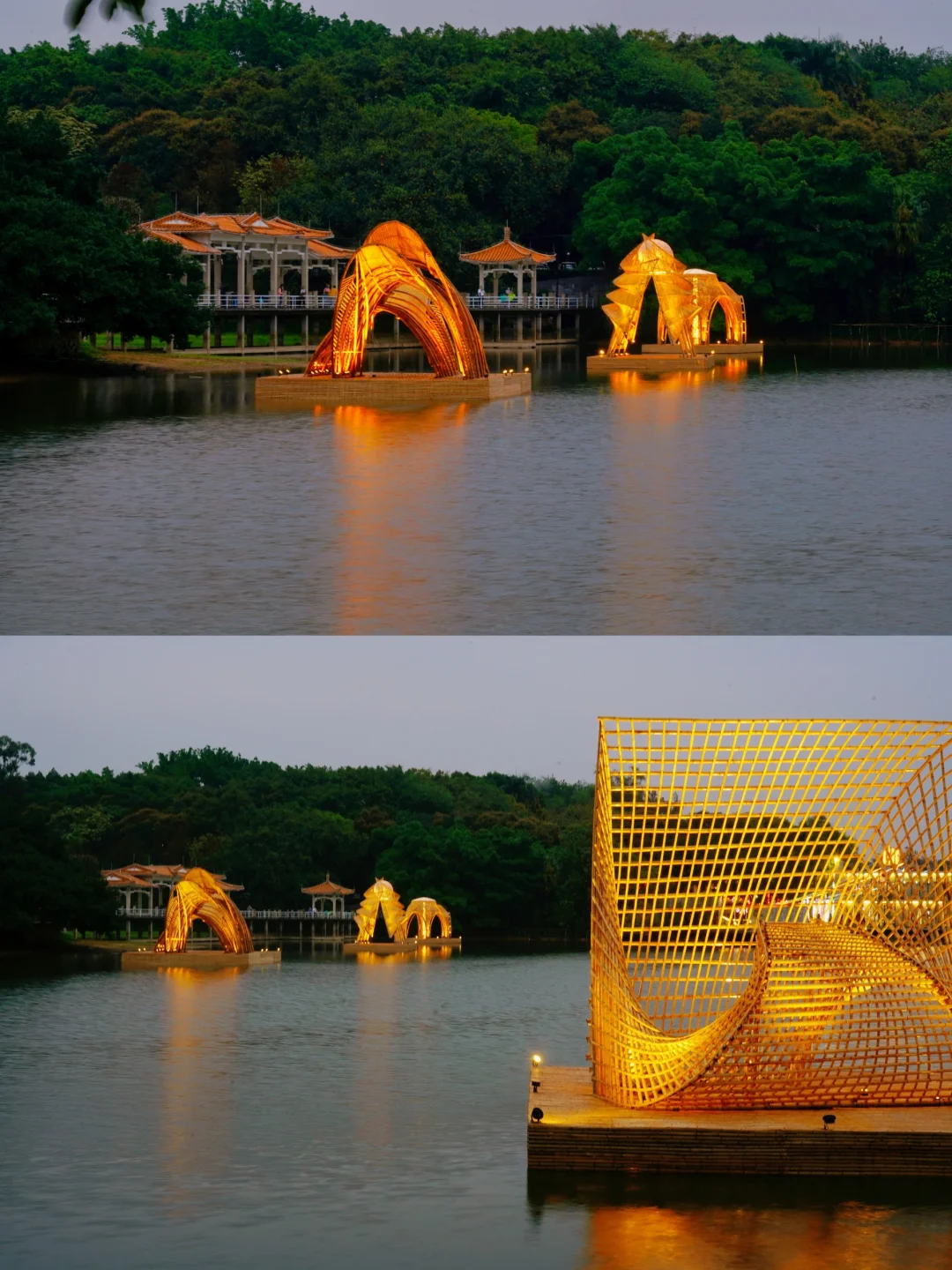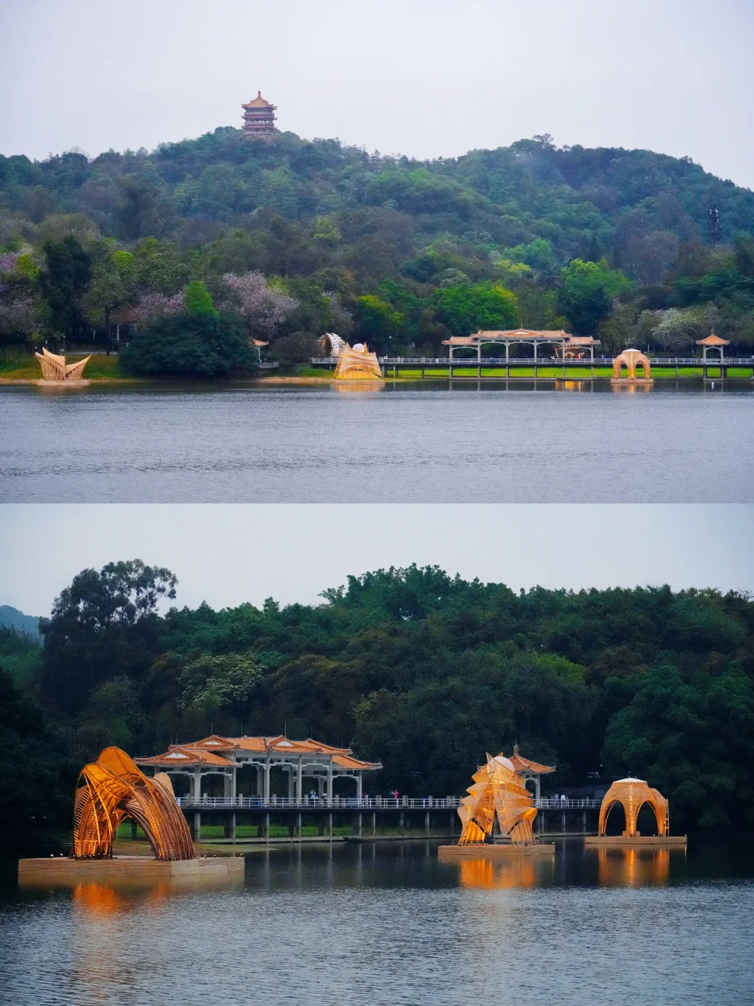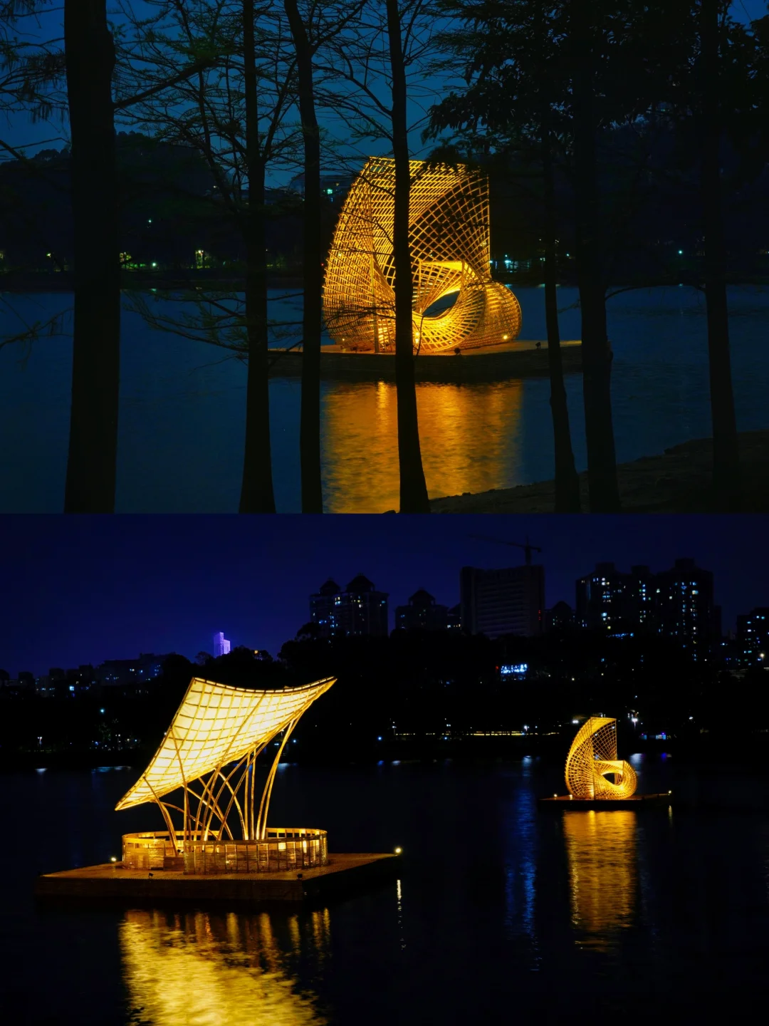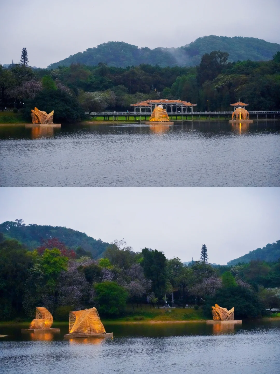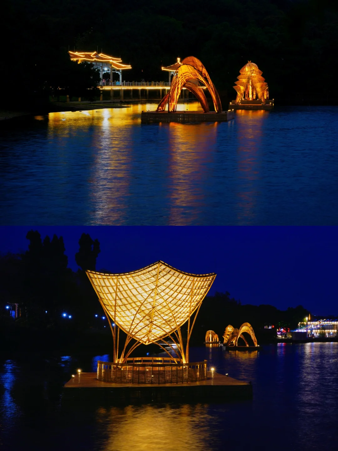 ①、如果因为近期雨天遗憾不出片的小伙伴可以选择晚上游玩,湖光灯光氛围感拉满💯