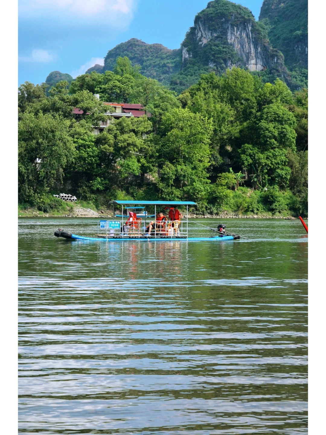 竹筏泛起阵阵涟漪