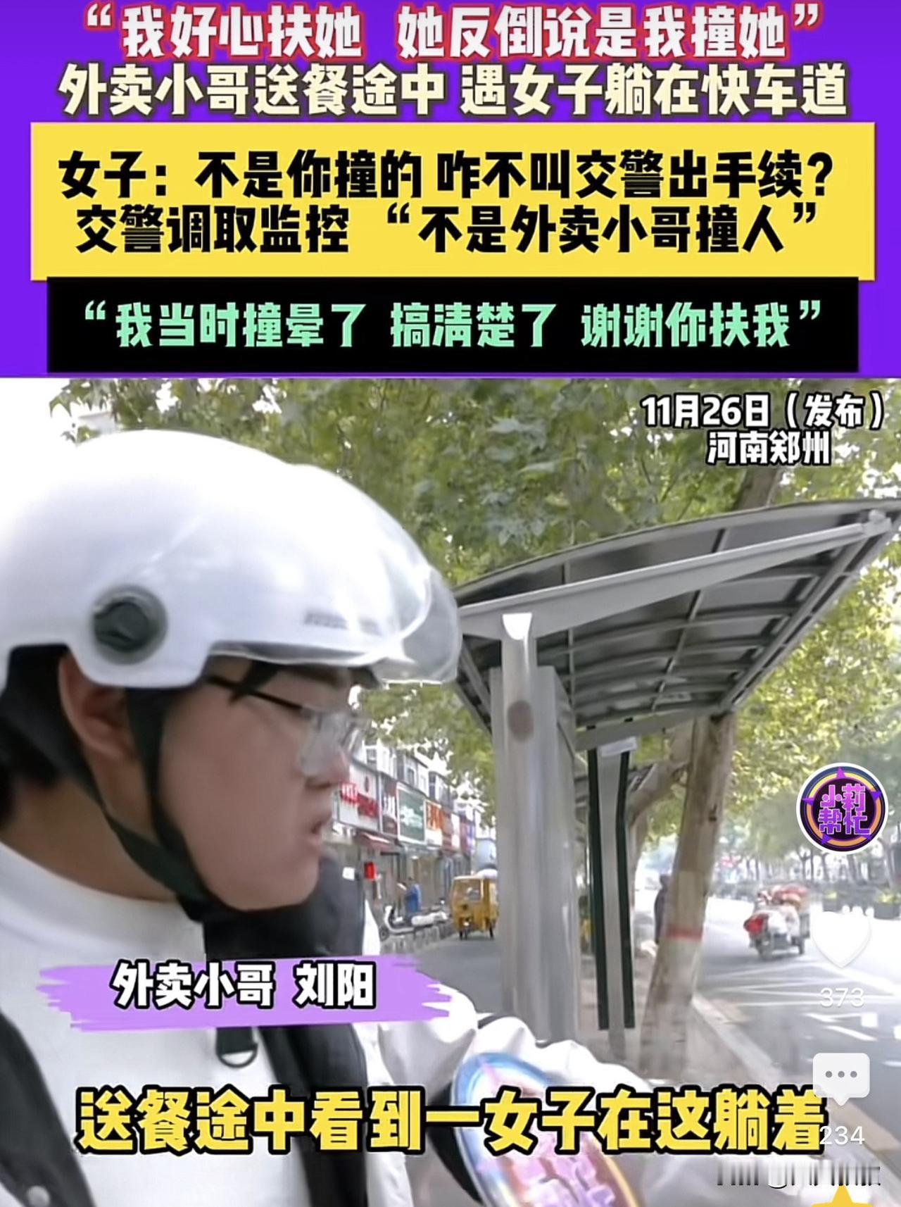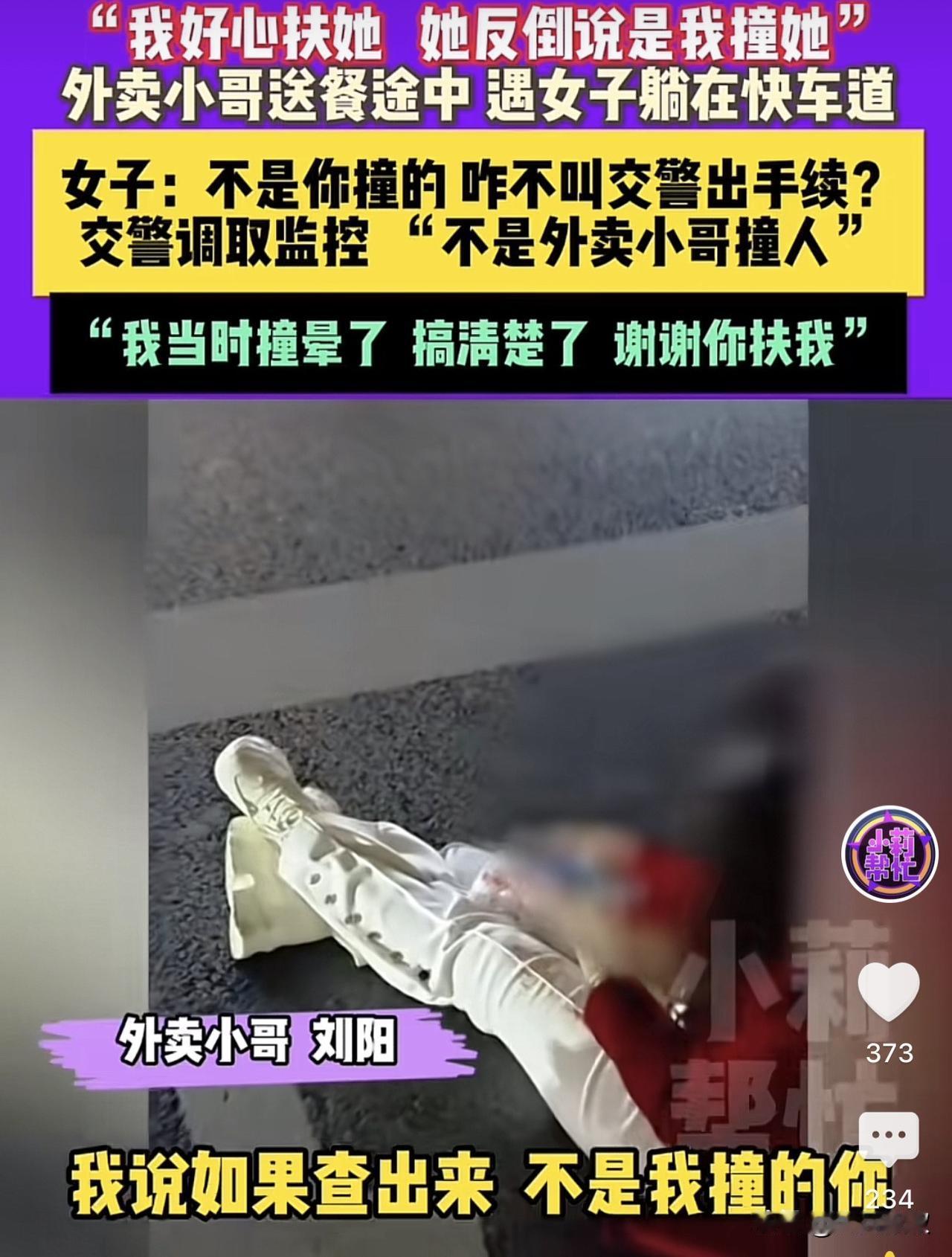 河南郑州,一外卖小哥在送餐时看见一女子倒在地上,于是赶紧将对方扶了起来,万万没想到,女子竟然拉着外卖小哥的裤子不让其离开,并表示是外卖小哥撞倒的自己,报警后,外卖小哥不仅耽误了送餐被处罚,电瓶车也被交警拖走了,然而,最终调查的结果却是外卖小哥在做好人好事。 刘先生是某外卖平台的注册骑手,事发当天晚上,刘先生手上接到了三个订单,于是便去饭馆取了外卖后就骑着电瓶车打算送餐。 结果在路上的时候,刘先生看到一女子躺在地上,手上全是血,于是,刘先生就赶紧将对方扶了起来。 可是,正当刘先生准备离开时,不料却被这名女子拦住了,女子称是刘先生撞得自己,要求刘先生负责。 刘先生听闻后当即懵了,没想到自己做了好事竟然被诬陷成了肇事者,因为手上有单子,刘先生当即表示,如果不是自己撞的,耽误我的损失,你会不会赔偿? 结果女子一听,直接把头转到了另一边,报警之后,刘先生的电瓶车也被拖走了,而且,因为这件事情,刘先生耽误了送餐被平台处罚了100多元。 之后,交警调查后确认了刘先生是做了好人好事,女子也表示当时自己被装懵了,现在搞清楚了,谢谢刘先生扶自己。 但是,因为车子被扣,加上耽误送餐自己一共损失了上千元,等到刘先生叫着媒体一起去医院,打算和对方协商赔偿时,不料又被女子母亲给推了出去。 事发后,网友就表示,就是诬陷的后果太轻了,或者说根本没有后果,但凡对女子进行处罚,想必她也不敢随便指认外卖小哥就是肇事者。 还有网友表示,善良的人是天生的,坏人也是天生的,虽然环境很重要,但是品格是改变不了的,如果没有监控给小哥清白,后果可想而知。 也有网友说,站在受害人的角度来说,自己被撞懵了,这个时候有人来扶自己,想当然的认为是肇事者,正常人谁会去扶自己,所以,被撞了之后有人来扶自己,必然认为是肇事者,没有毛病。 其实,现实中,救助者要证明自己没撞人是太难了,幸亏这起案件中,有监控还原了事实,但是,监控不是到处都有,证人也不是每次都能碰到。就算真的清白了,讹人者往往也不会受到实质的处罚,最多就是口头道歉或者被警告而已,违法成本低到几乎可以忽略不计。 但是,一旦诬告坐实,讹人者就能够获得一笔相当的赔偿,尤其是在无接触交通事故也担责的今天,让很多想要伸手帮助的人有了顾虑,所以,至少要对讹人者进行实质的处罚,比如情节较轻的,处治安拘留加罚款,让他知道疼,情节严重的,直接按敲诈勒索罪追究刑责,该判刑就判刑。 而外卖小哥因为被女子这样一讹,直接导致了自己送单延误加上车子被拖没办法继续跑单的,那么也算是小哥得的实际损失,在这种情况下,外卖小哥有权要求女子承担误工费、精神损害赔偿金等相应损失。 最后,我们谁都希望在自己需要帮助的时候,有人能毫不犹豫地伸出手。所以,只有让讹诈行为付出沉重代价,才能够让善良得到弘扬。 对此,你对本案有什么看法? —————————— 关注我,带你评析法律热点,关注冷暖人生。 文章原创,抄袭必究