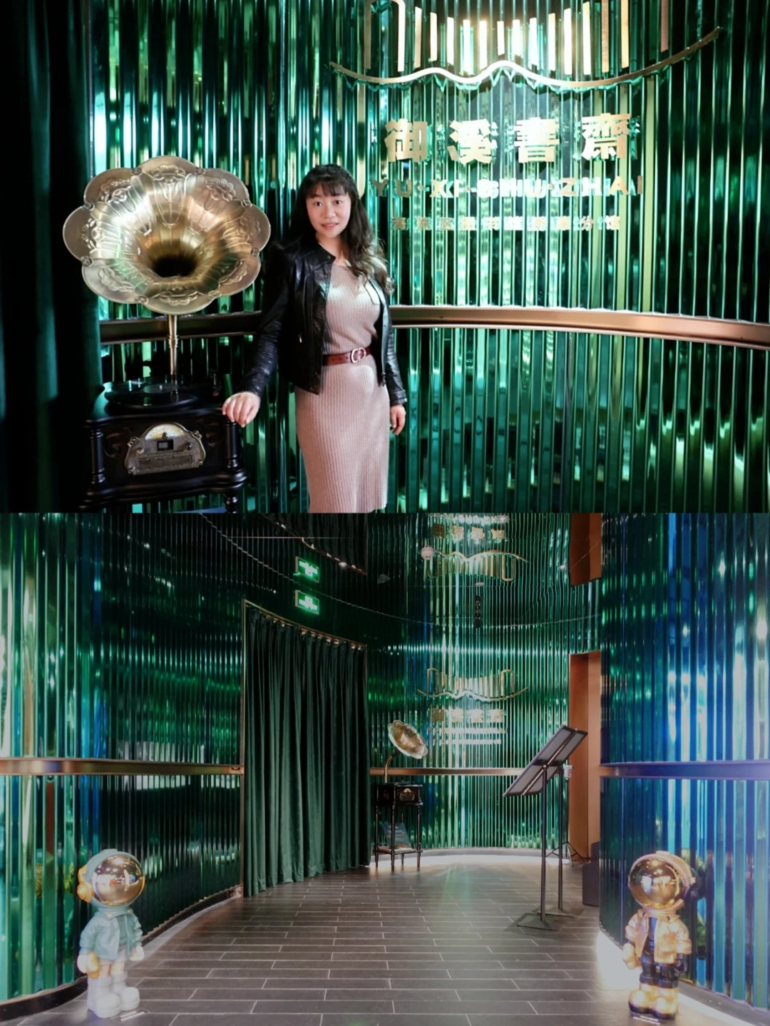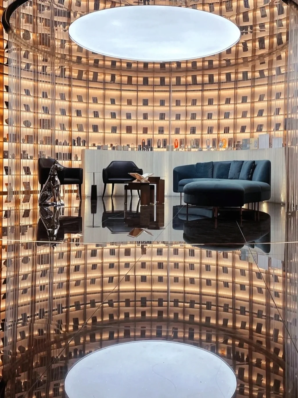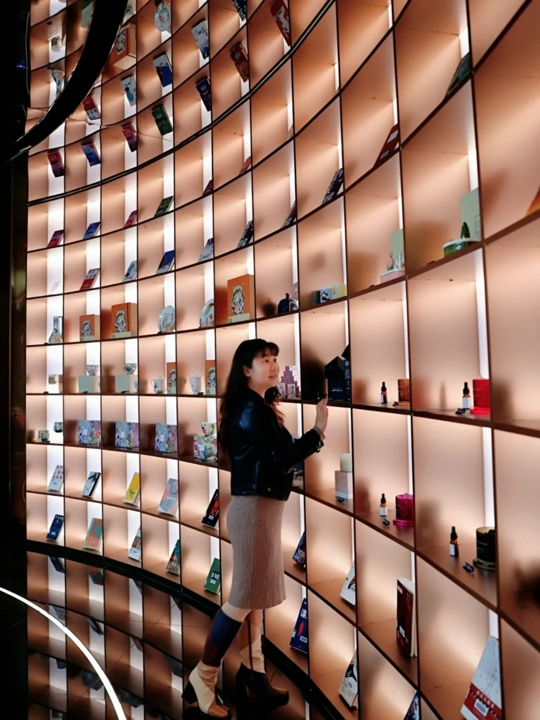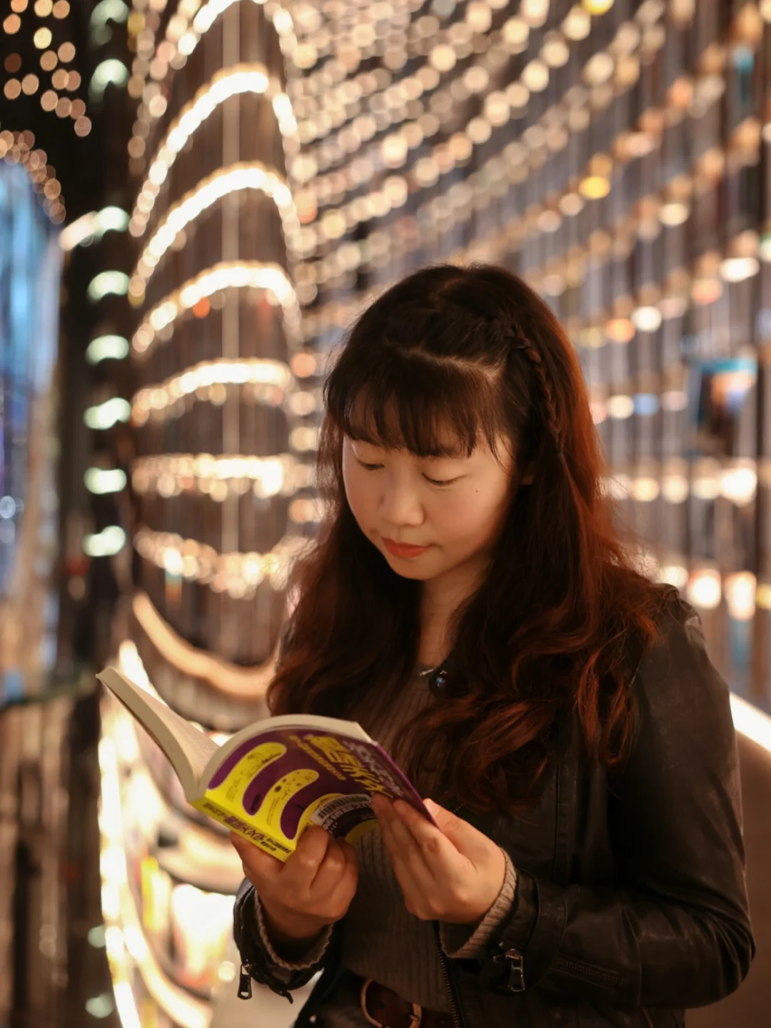今年的冬天似乎特别的长,阴雨不断,人也提不起精神。 于是找了一个下午来到种草已久,由海珠区图书馆和侨建 HI CITY 合作共建的御溪书斋。 一走进书斋,通透的镜面与灯光相配合,让本身不大的书斋开阔了许多,更无限拉长了书柜的纵深度,再加上星光般的灯饰,如满天繁星坠入银河! 这里也忍不住想分享一个阴雨天的小穿搭心得,纯色针织裙搭配黑色小皮衣不免有些单调。新入手的西班牙小众品牌 Alohas拼色长靴,多了几分色彩,也不失高级感!