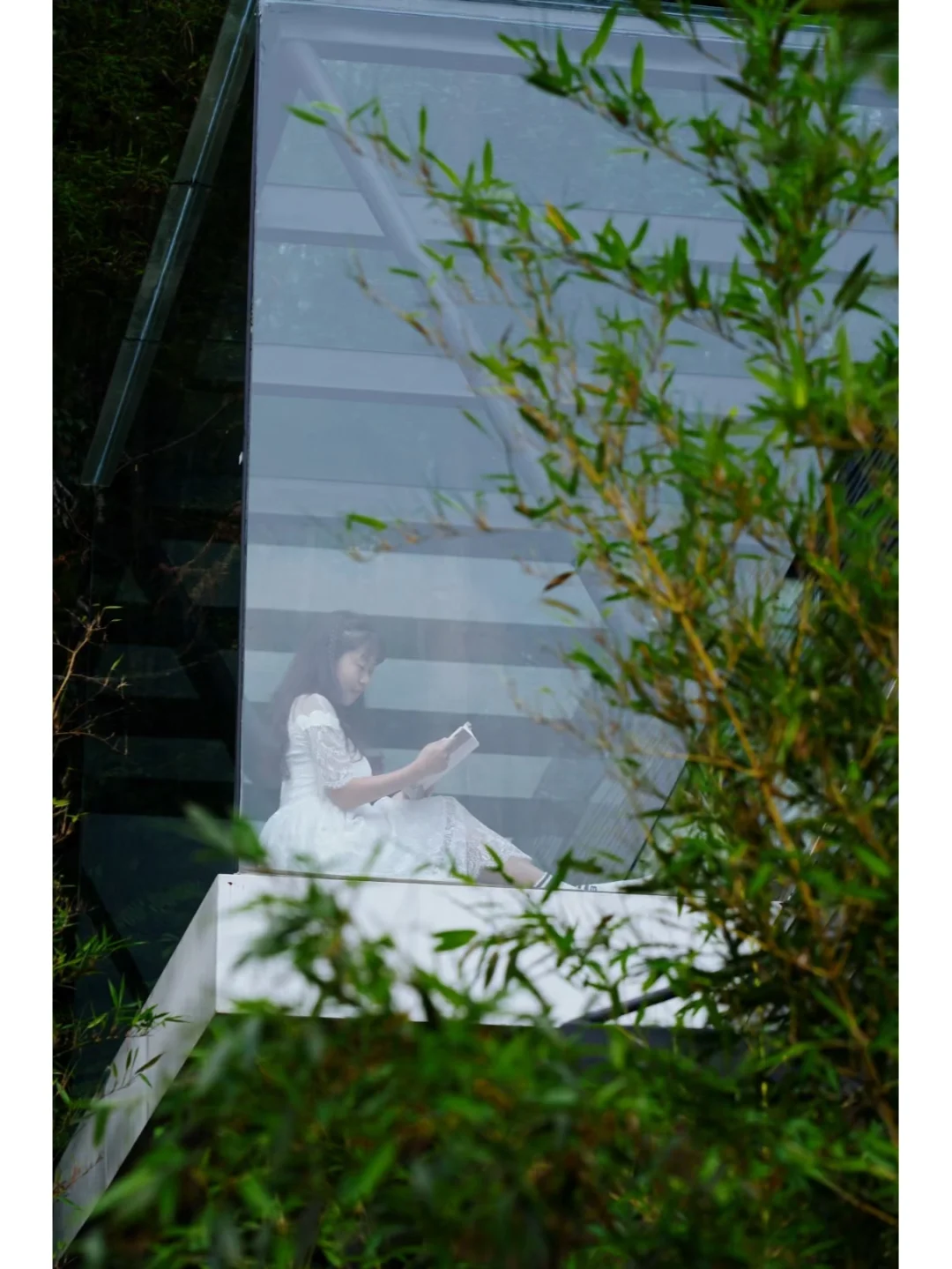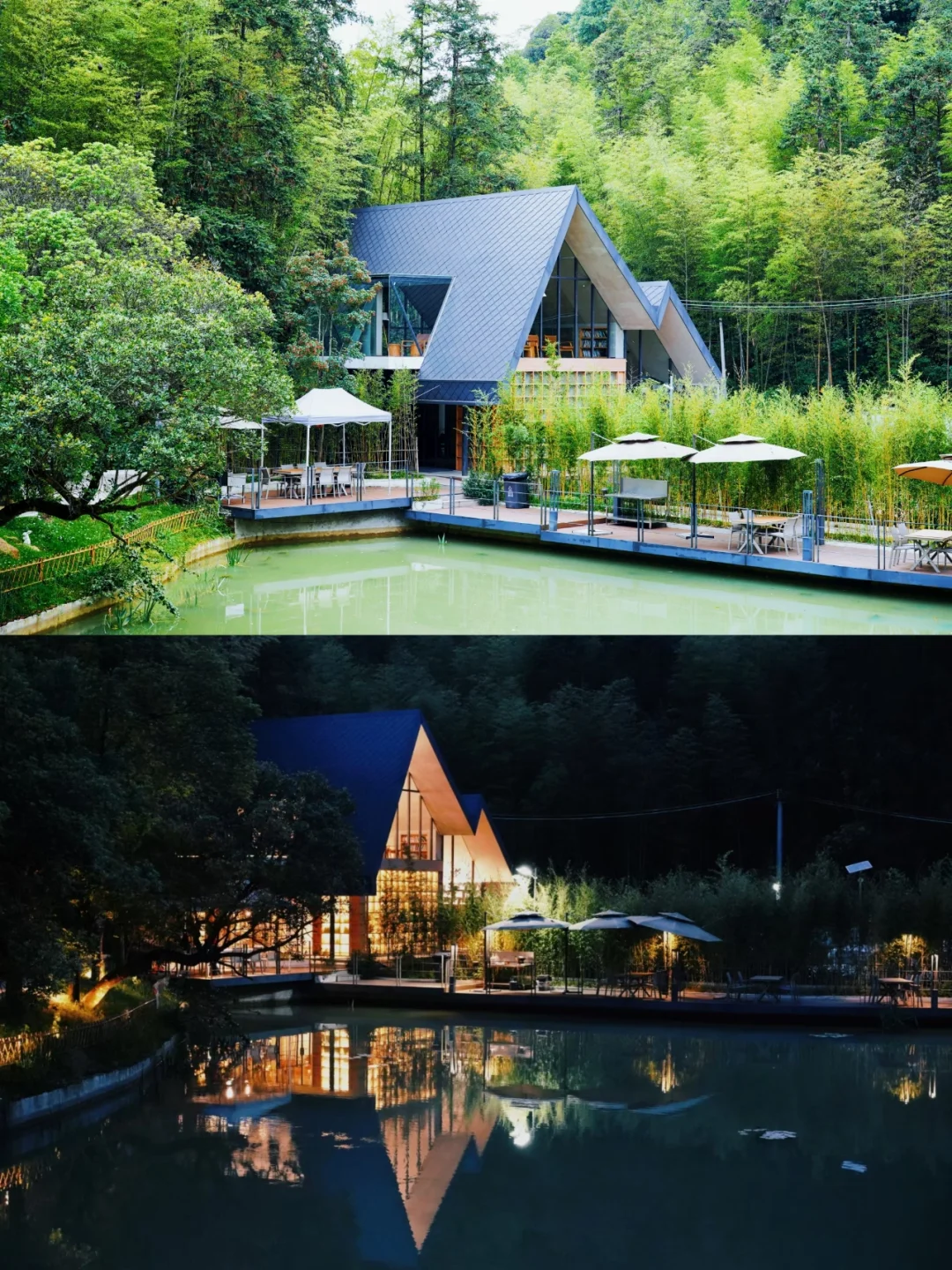 青山绿水间,或取一本藏书,坐在透明悬空书屋里细读,安静得只有指尖轻滑过纸张的窸窣;或泡一杯咖啡,坐在湖边竹林旁,静赏闲云、心随花开……