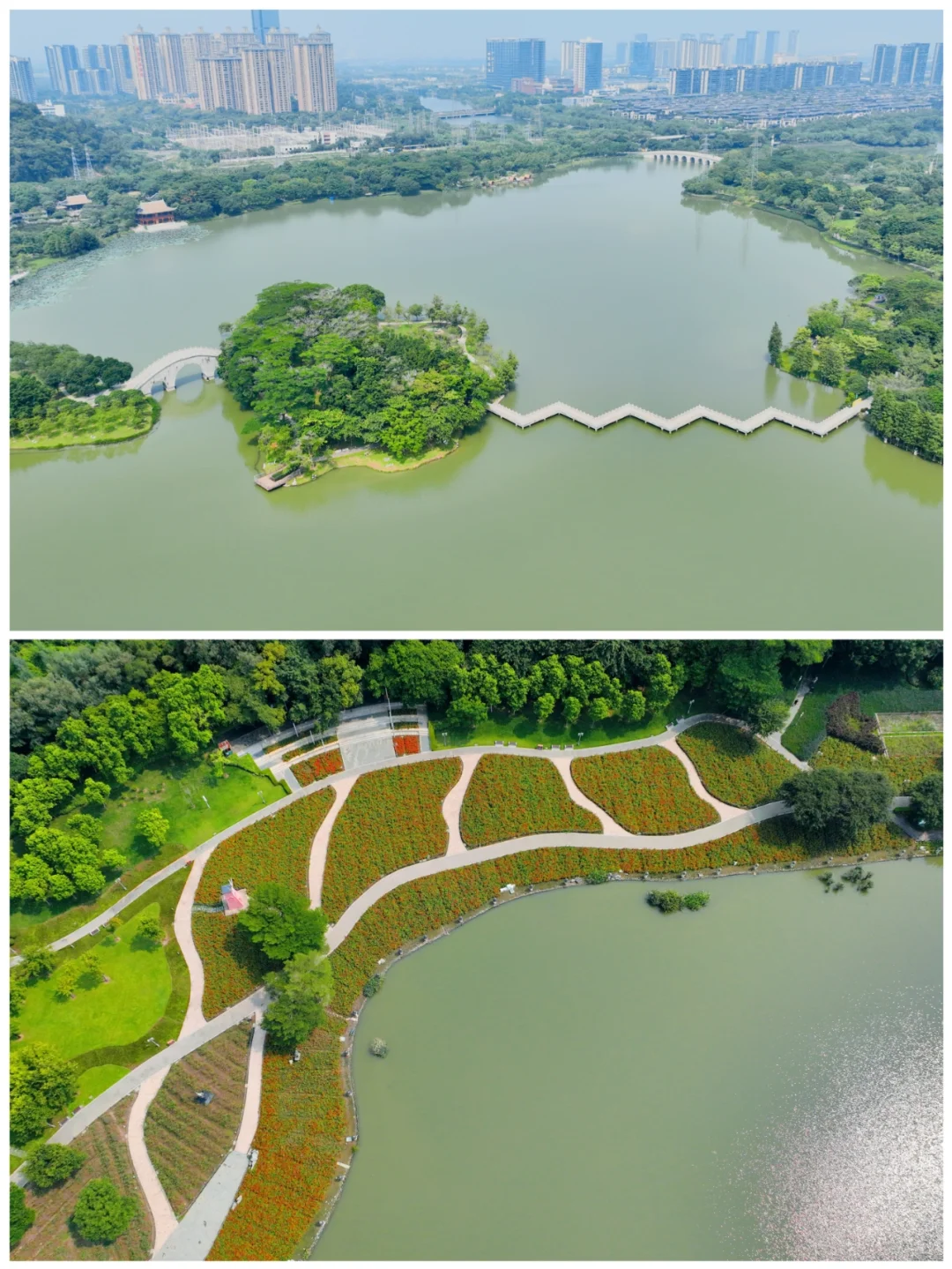 发现两座桥之间的小岛像是一个💚,很是有爱哦!