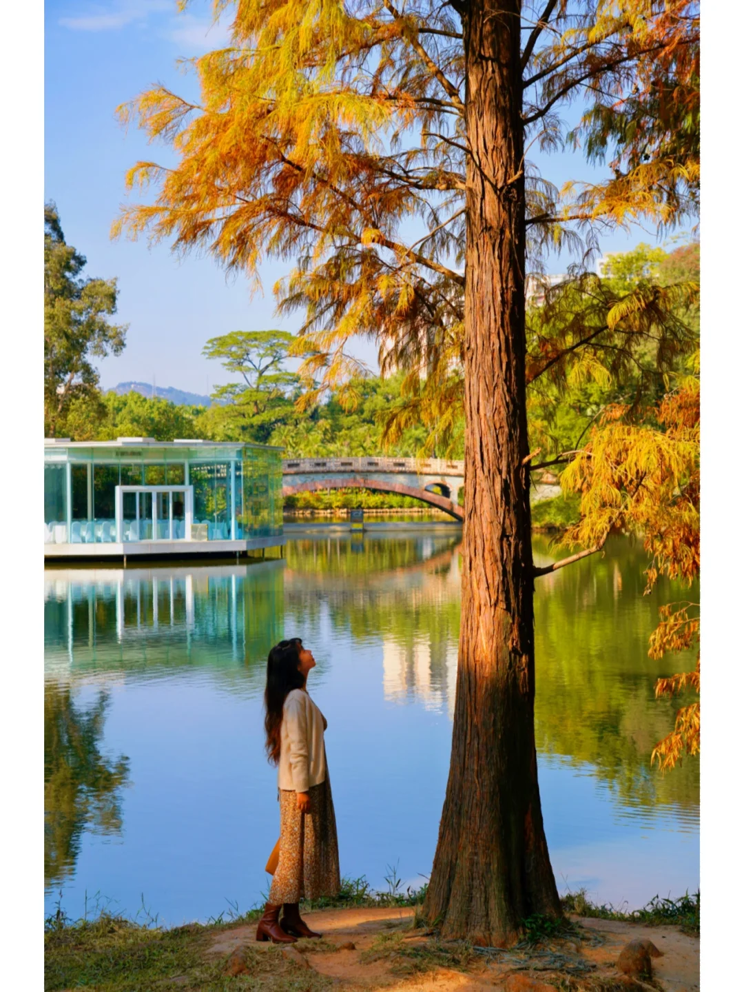 广州的深秋,因落羽杉渐渐染成的焦糖色