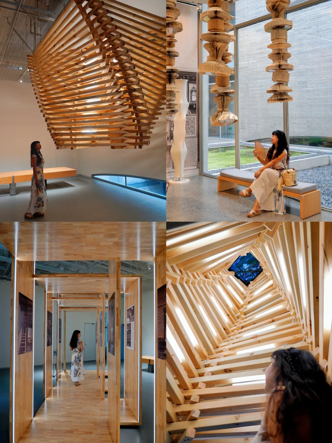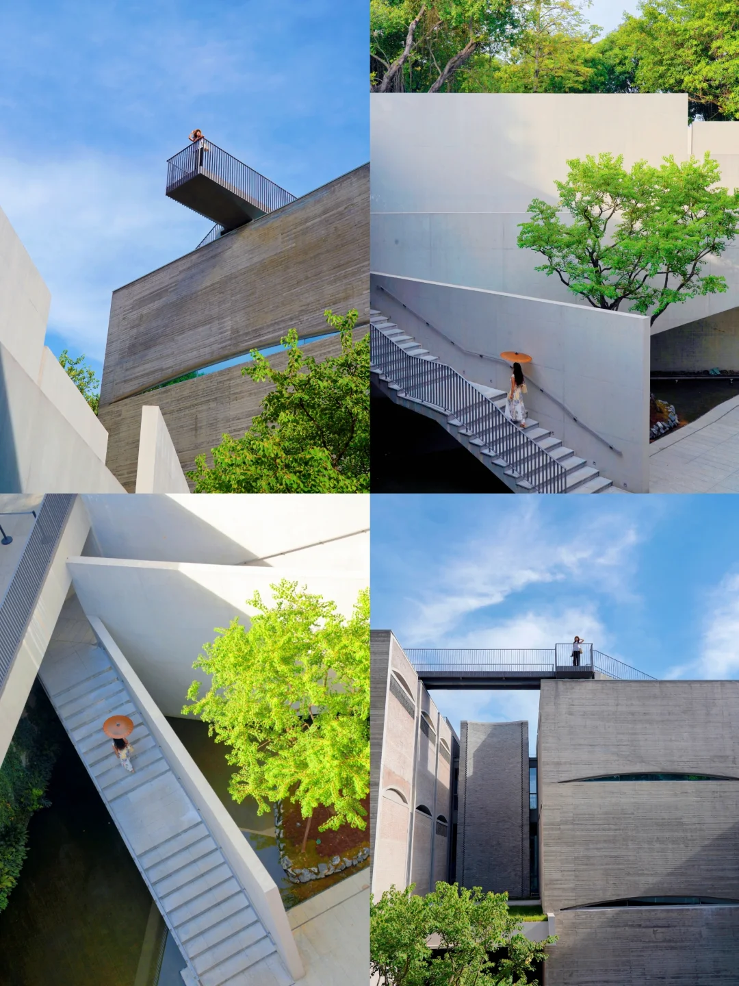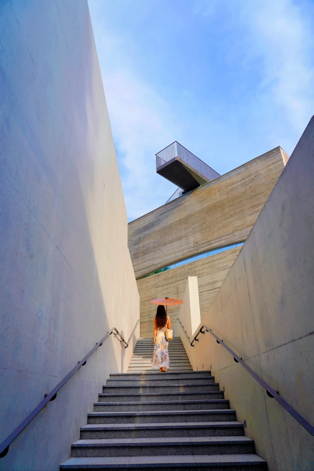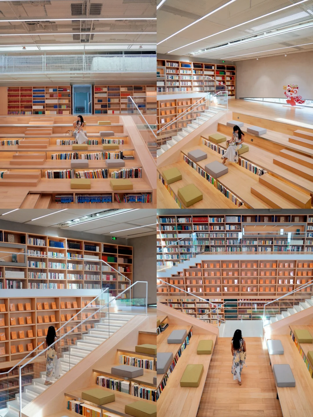 还能从空中步道俯拍负一楼的楼梯,无需航拍就能 get 到上帝视角,同去的小伙伴顶楼底楼互拍也很有意思!