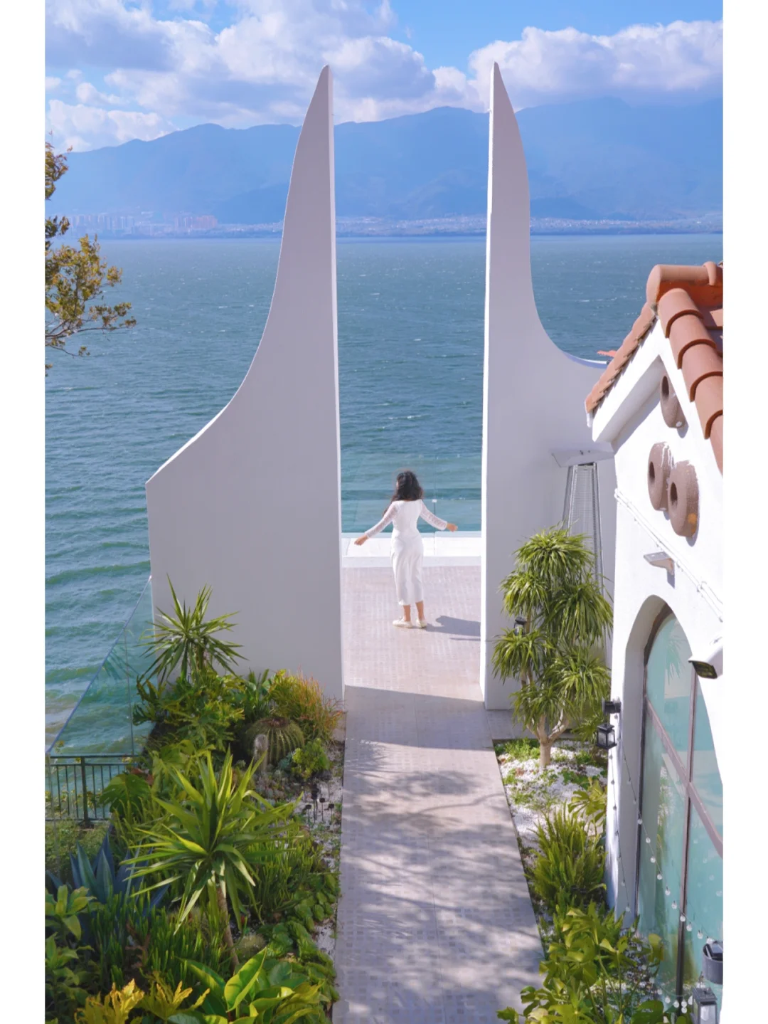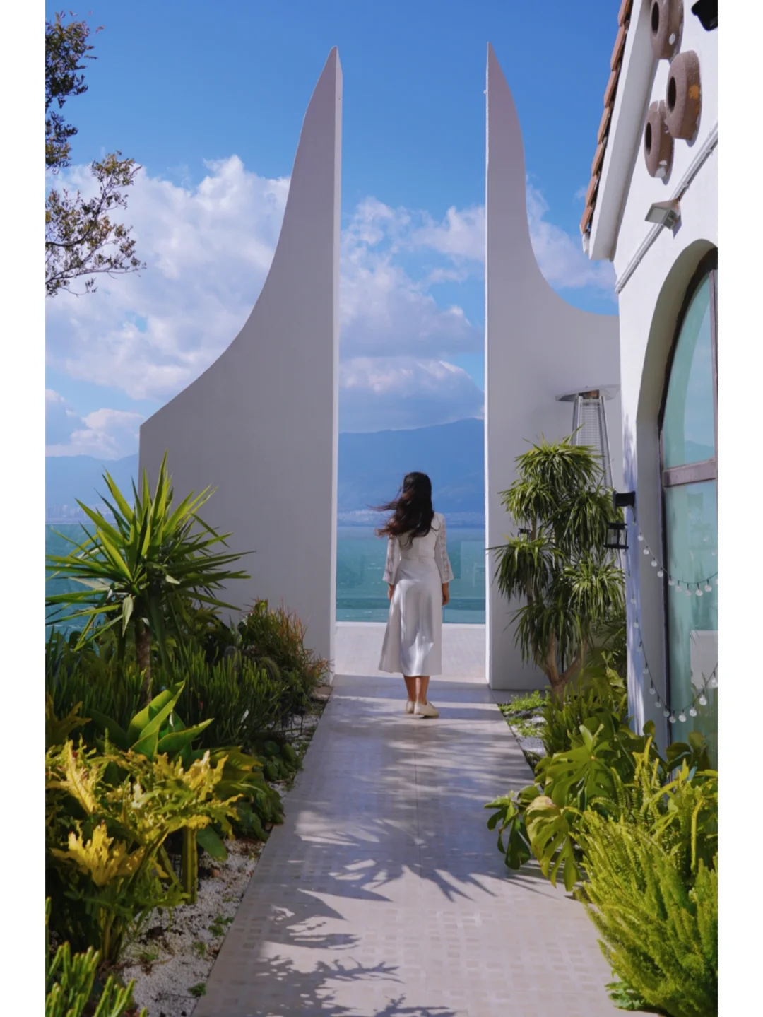 入门处阶梯下,似天空之门的布景便将度假氛围感拉满💯