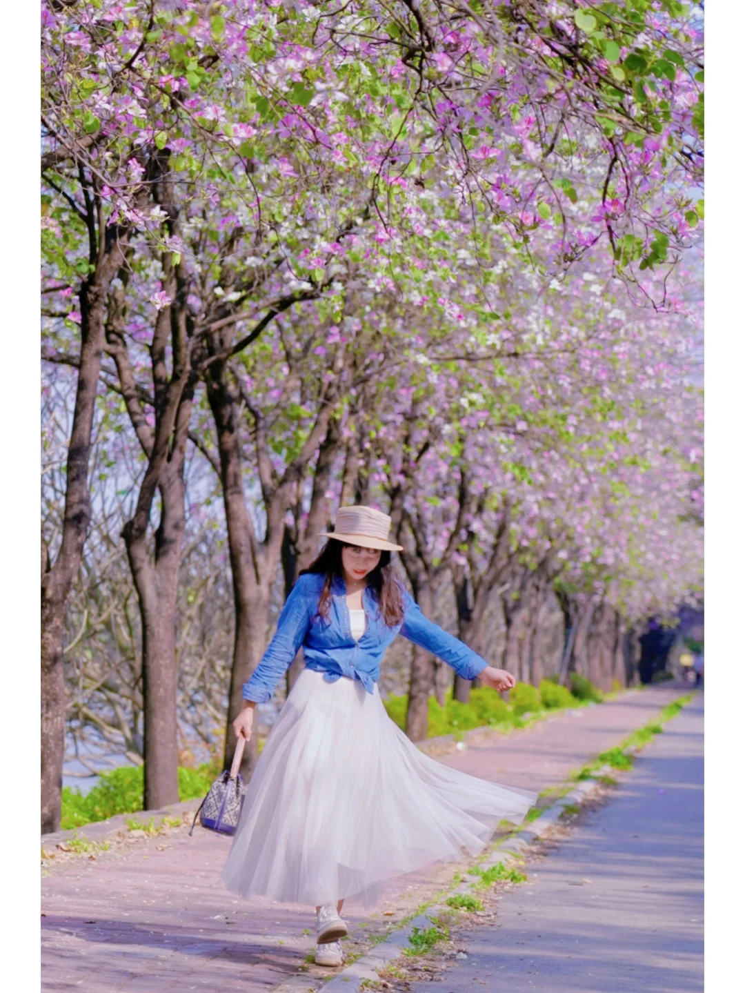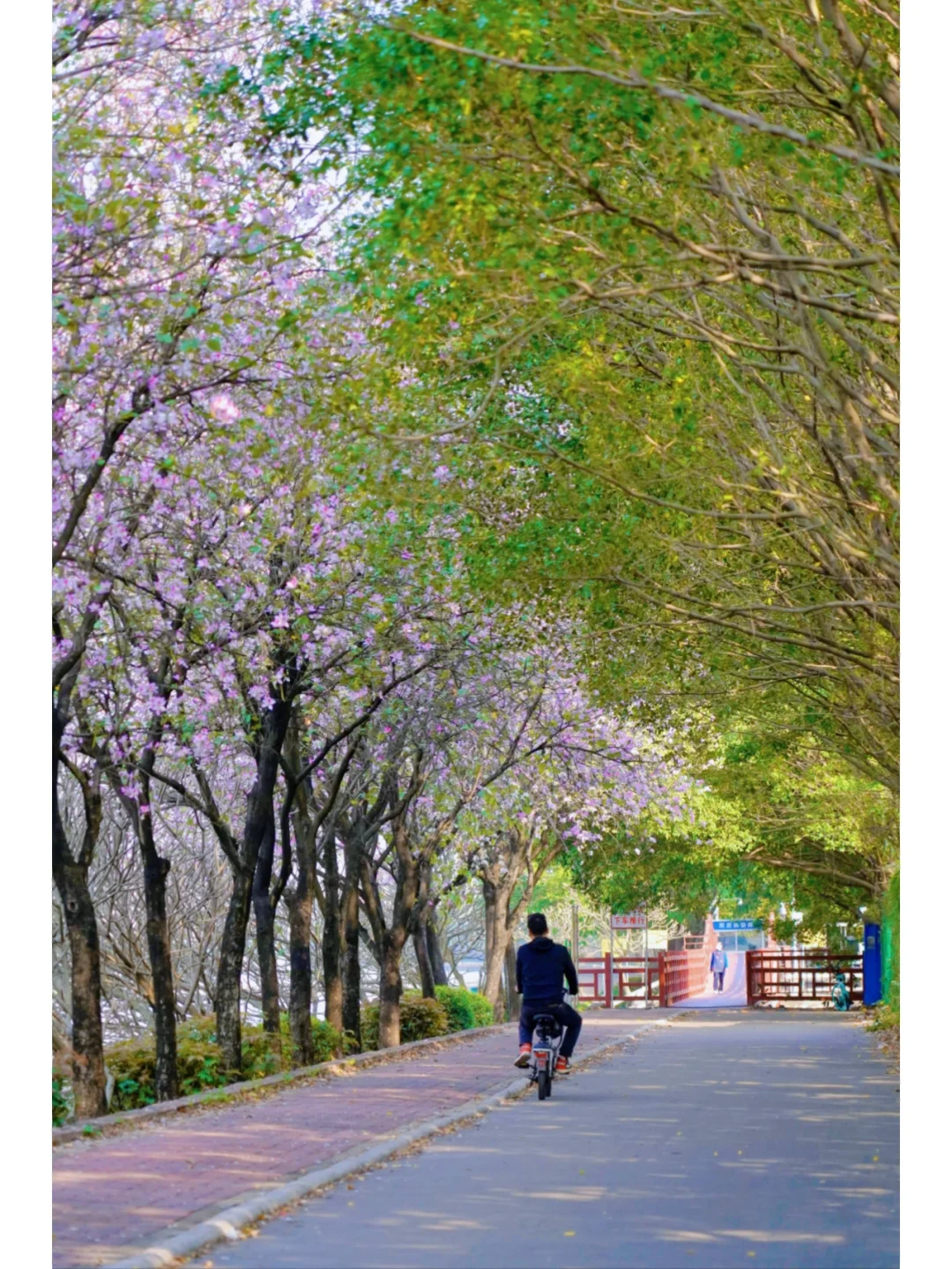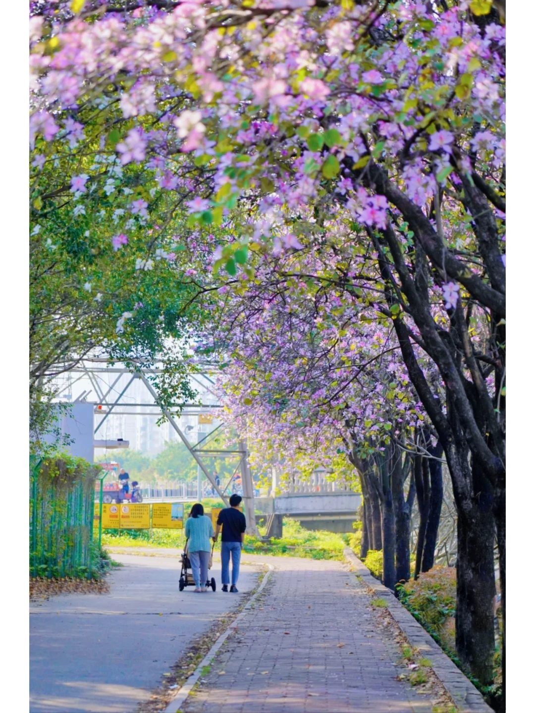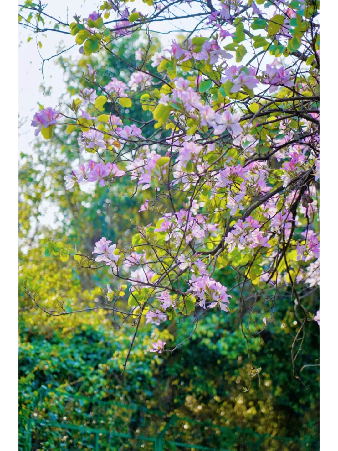 发现了一条开满宫粉紫荆花的林荫小道
