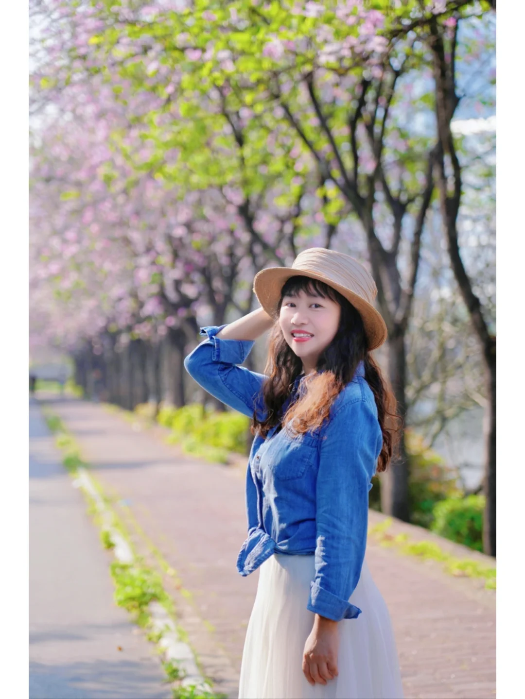 2、浅色裙子更有春天的梦幻感,搭配一顶草帽👒 氛围感拉满