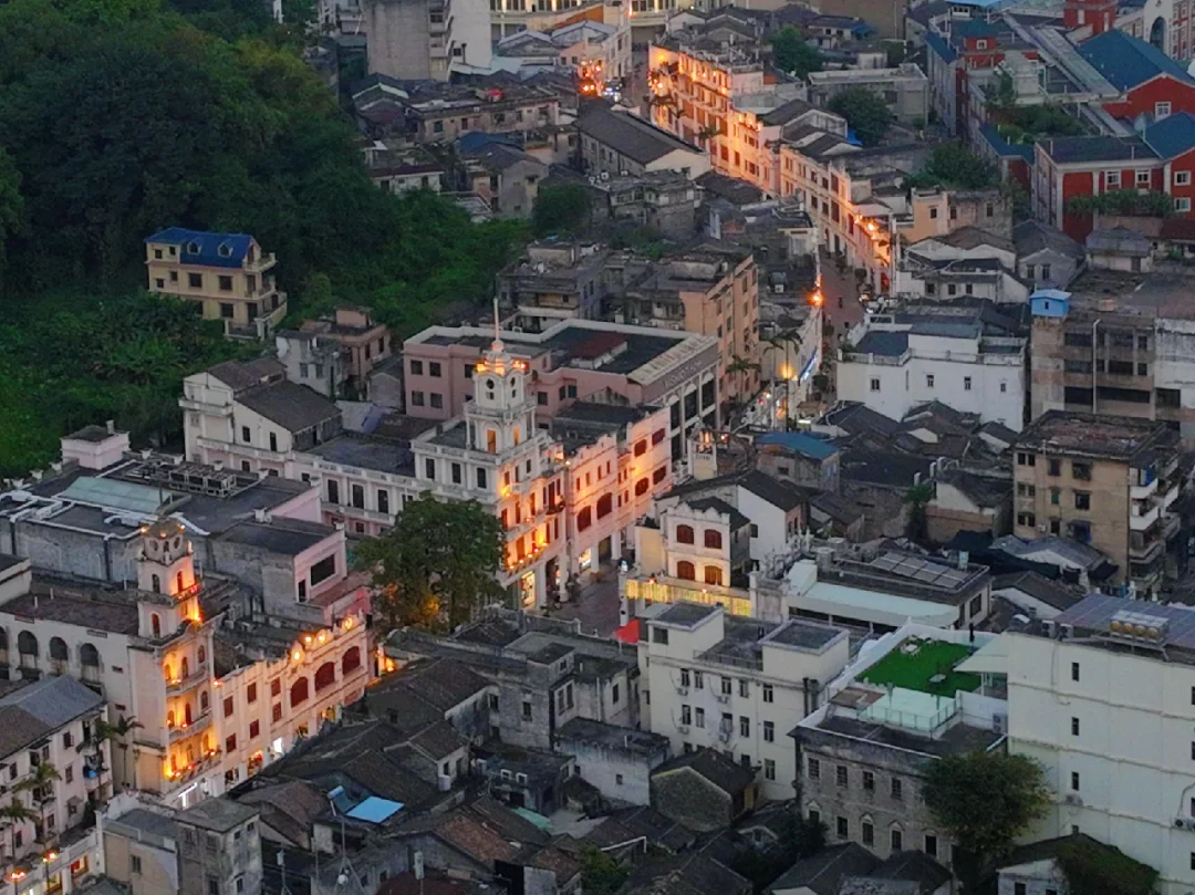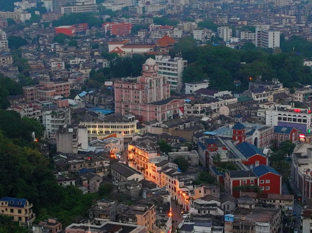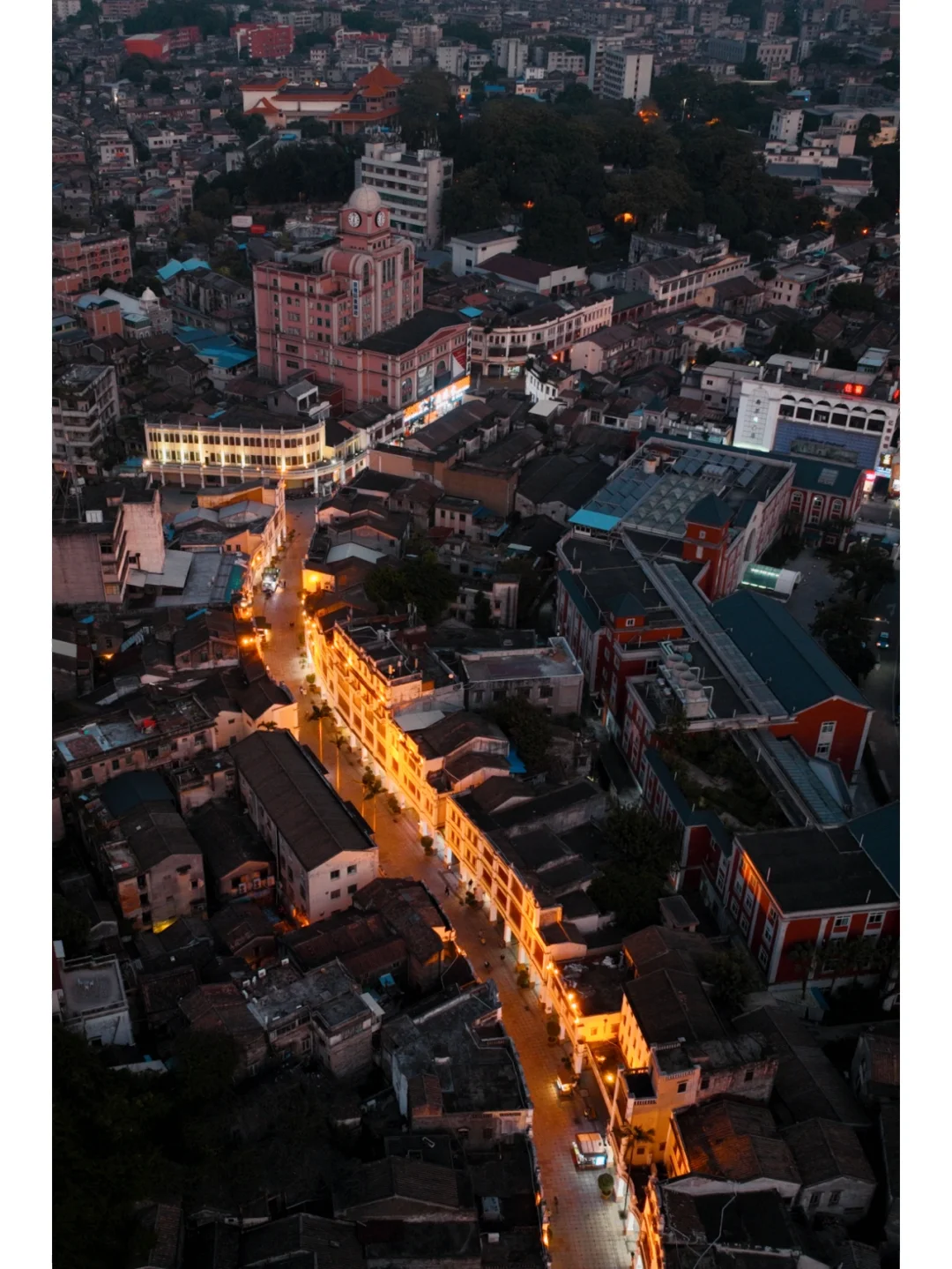 ④、步行街的夜景很赞,如果想航拍可选择过岐江桥的河边,那里车辆与人流就少了许多,也可拍到幻彩摩天轮🎡