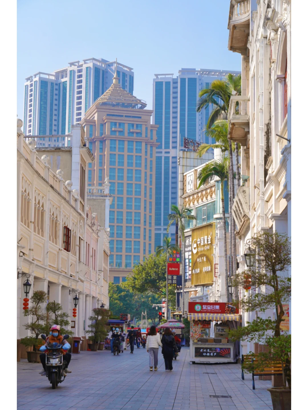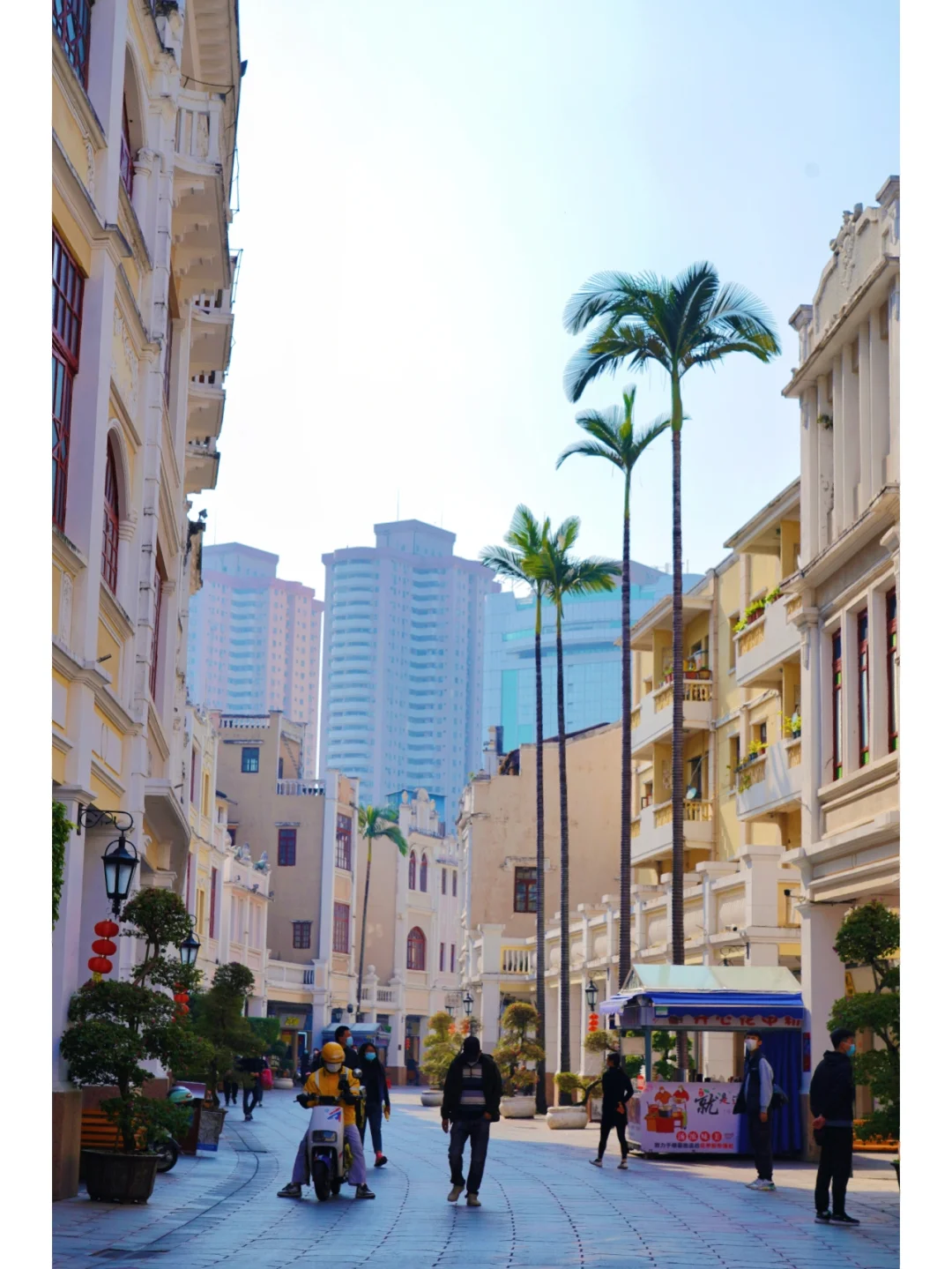 ②、沿着步行街一路都挺好拍,街道的自然蜿蜒处、街中的棕榈树🌴 也很有南国风情