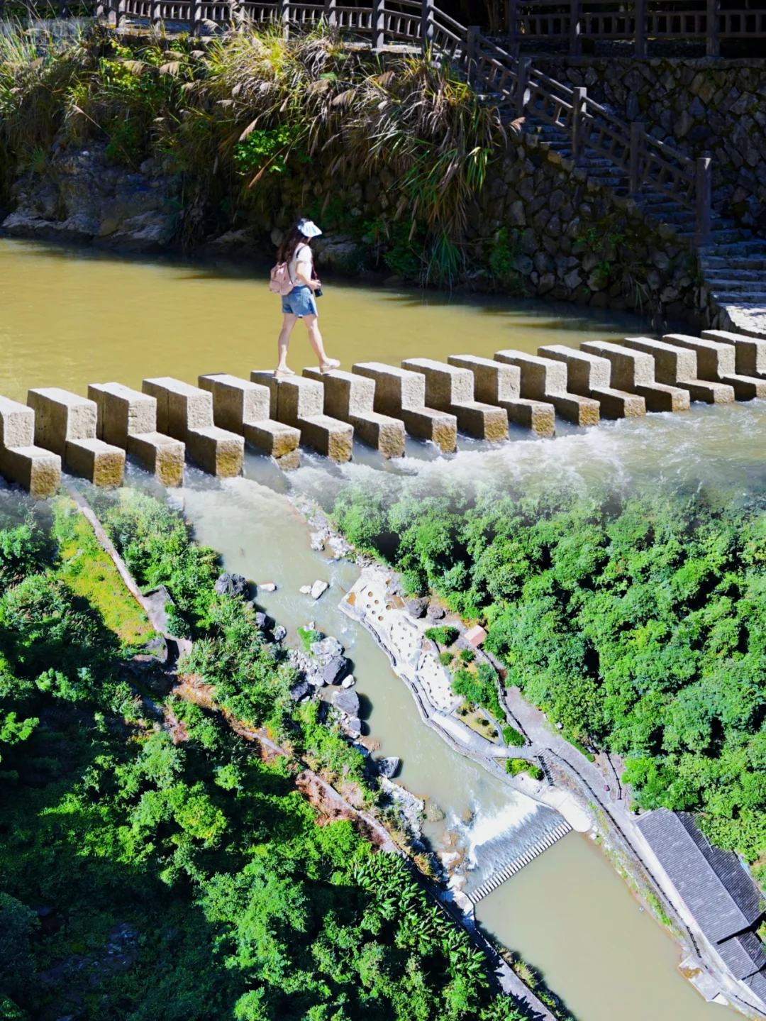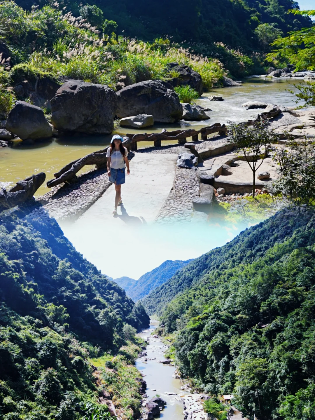 沿着石阶缓缓走下谷底,一路的风景从郁郁葱葱的林间小道豁然开朗,峡谷风光间还藏着一处氡泉泉眼。这可是在5000多米深的地层下,经过38万年漫长深循环增温,渐而形成的氡温泉。