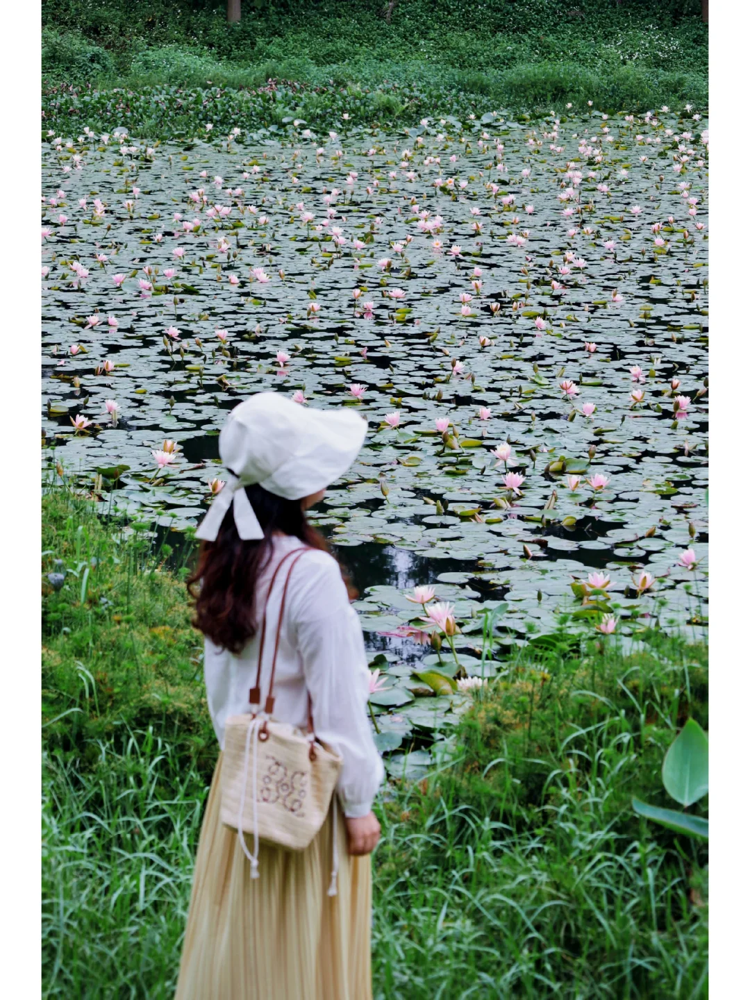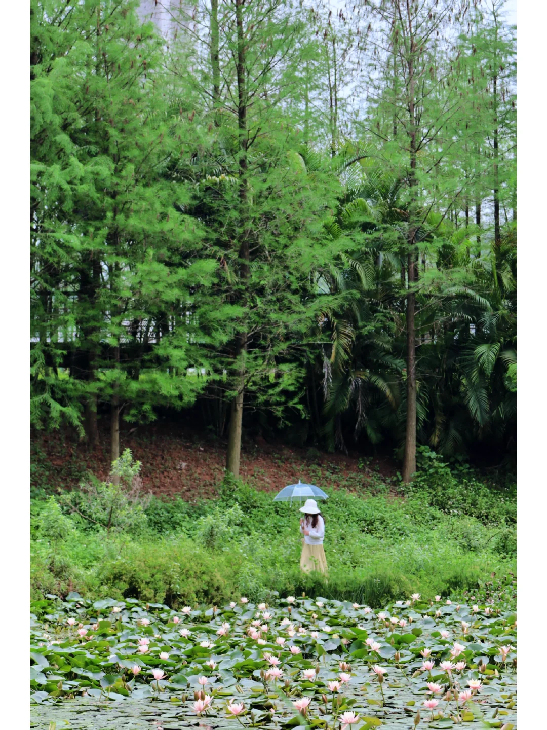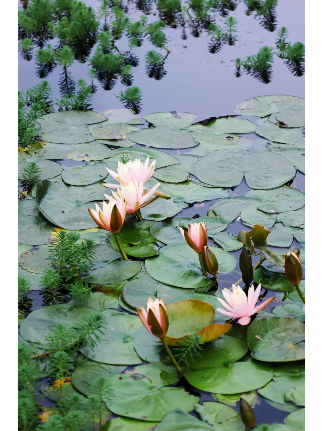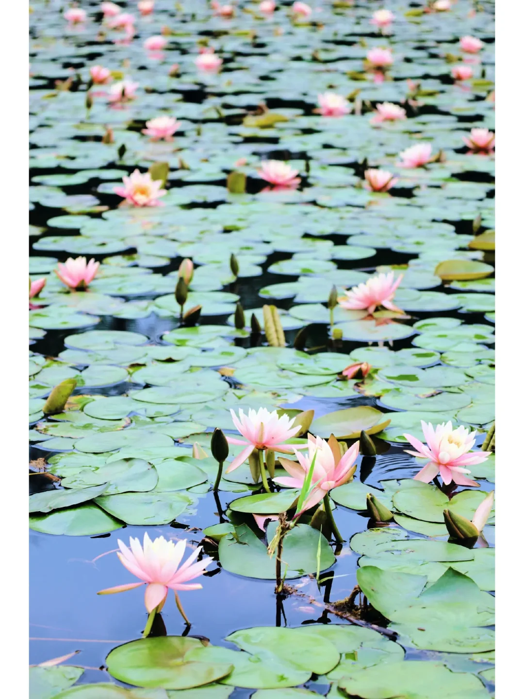 ①、满池塘的睡莲开得正好,就算是最近的雨天也很出片。不过池塘周边泥土有些松软,拍照游玩时需要注意安全