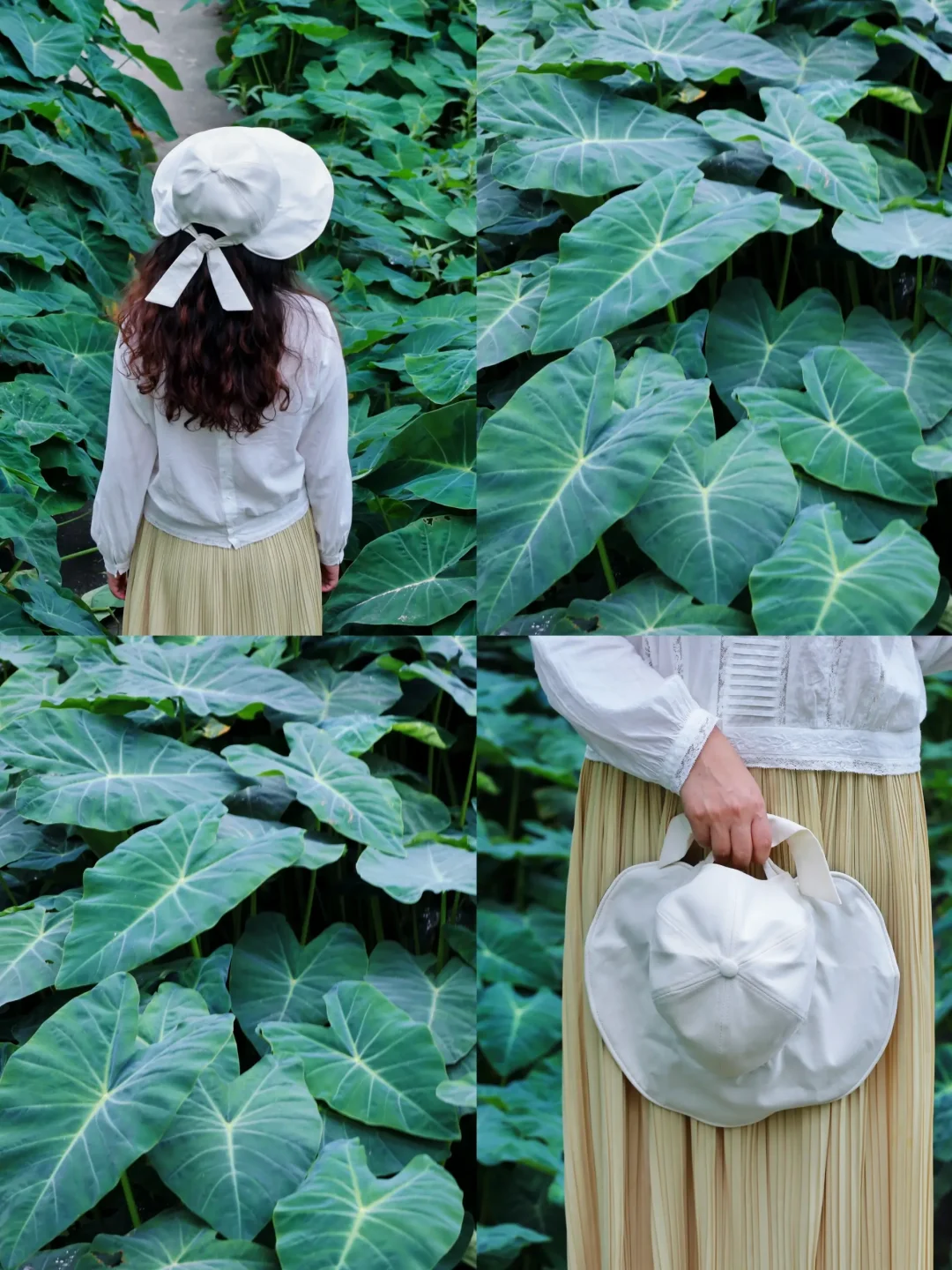 ③、虽然是阴天,却也还是需要防止紫外线对肌肤的伤害,所以户外出行喜欢带上杨同学帽子,不仅帽檐宽大防晒效果好,而且很是柔软也方便放进包里