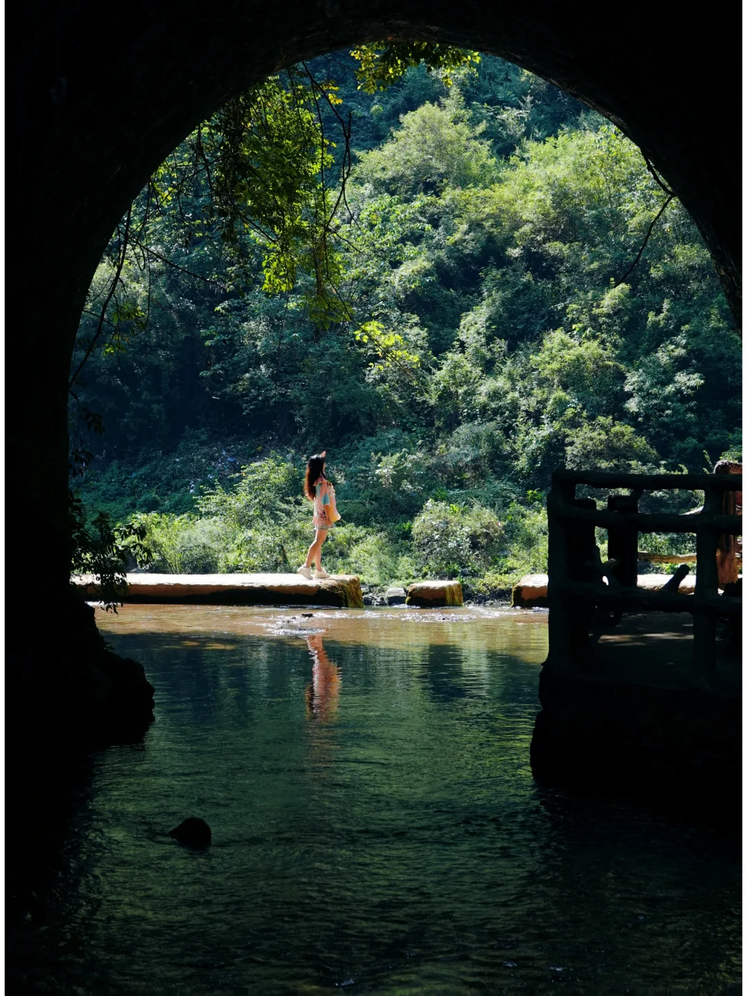 下到"一线天"峡谷,沿着小溪栈道拾阶而上,沿路修竹茂林、沟壑清溪
