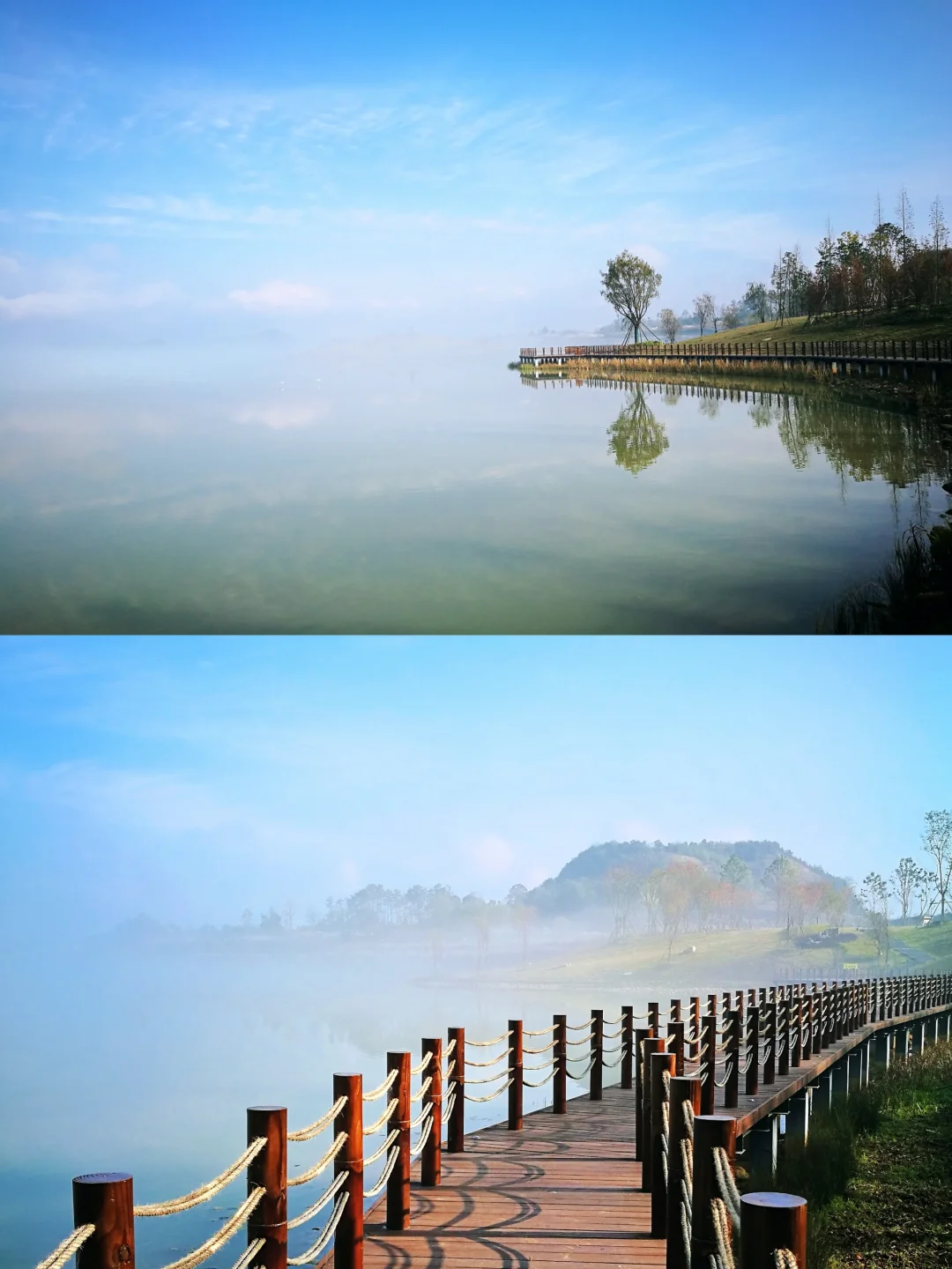 朦朦胧胧如水墨山水画般,天气好的时候可露营