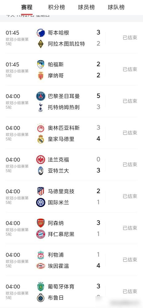 欧冠惨案频发,全部打疯了! 这一夜注定会成为欧冠史上的经典! 看看! 北京时间11月27日凌晨欧冠第5轮第二日出现的这9场欧冠比分你敢想? 能惊掉多少人的下巴? 而且很诡异的是,这就是同时在这个星球上不同地方进行的比赛,大家如同约好了一样展开疯狂进攻都不设防。 “晋西北都已经打成一锅粥了,赶紧问问李云龙这小子又闯啥祸了?! ”。 欧冠小组赛的积分榜经过这轮洗牌,彻底乱套了。 原本明朗的出线形势突然迷雾重重,弱旅看到了希望,强队惊出一身冷汗。 这种不确定性正是欧冠的魅力所在,你永远猜不到下一个爆冷的是谁。 球迷们算是过足了瘾,可教练席上的大佬们怕是彻夜难眠。 战术板要被反复推倒重来,球员状态要重新评估。 这一夜的成绩单太过刺眼,它用最直接的方式告诉所有人,欧冠赛场,轻敌就是自取灭亡。 足球比赛的魅力就在于此,它从不按常理出牌。 当所有人都以为强弱分明时,它偏要给你上演一出逆袭好戏。 这一夜的欧冠,注定要被写进历史,成为球迷们多年后仍会津津乐道的传奇之夜。