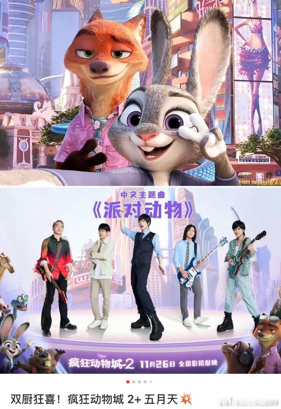 疯狂动物城2 五月天来万达影城看疯狂动物城2 神仙合作!五月天歌声遇上动物城冒险,旋律与画面碰撞出奇妙火花。在万达不仅能免费领取可爱贴纸和居民证,还能get独家胡萝卜桶,看完电影听着歌,快乐持续一整天!