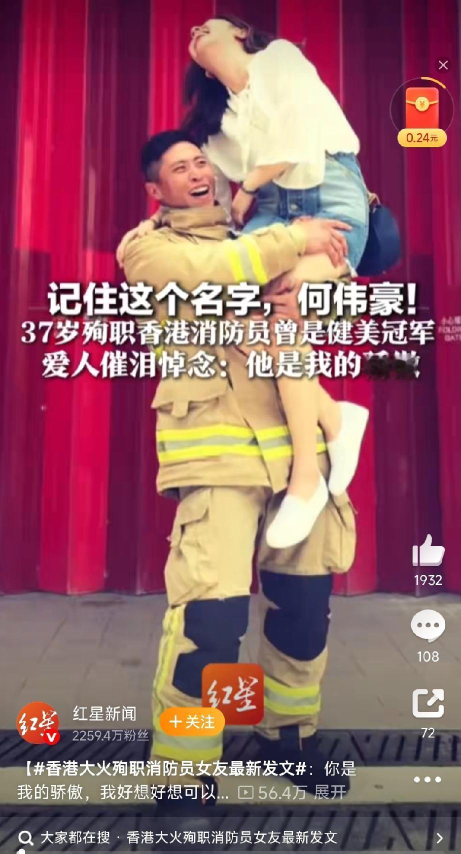 有一位英勇无畏的消防员何伟豪,在执行任务时不幸殉职。他的事迹以及他女友发布的那篇文章,着实令人感慨万千。 红星新闻的记者发现,何伟豪此前常在社交平台与一位用户甜蜜互动,诸如“一起过情人节”“爱你”之类的话语,尽显这对小情侣的恩爱。后来,新京报等媒体也证实,这位用户正是何伟豪的女友。 此事传开后,众多网友纷纷前往他们的账号下留言。大家有的悼念英雄何伟豪,有的关心他的女友,都盼着她能坚强起来。 27号下午,何伟豪的女友在账号上更新了一篇文章。文章开篇,她便感谢大家的关心,称已看到所有留言。我认为她在如此悲痛之时仍不忘感谢网友,足见其礼貌,也能看出她是个善良的姑娘。 她在文中写道“我的superhero任务完成返回氪星了”,“氪星”是超级英雄系列中的虚拟星球。她把何伟豪比作超级英雄,浪漫又让人心生怜惜。在她心中,何伟豪就是那个能守护她、拯救世界的大英雄。她还表示何伟豪是她的骄傲,可见她打心底为有这样英勇的男友而自豪。 然而,话锋一转,她称想向大家请个小假,因为她实在无法接受何伟豪离去的事实。短短几句话,却让人感同身受。试想,不久前还与自己甜蜜互动的爱人,骤然离世,换作谁都难以承受。文末那句“我好想好想可以再牵你的手”,更是让人潸然泪下。这得是多深沉的爱、多浓烈的思念,才会道出这般话语。 何伟豪为保护众人牺牲,他是当之无愧的英雄。而他的女友,在如此悲痛的时刻仍能保持礼貌与坚强,着实令人敬佩。希望大家能给她一些时间和空间,让她慢慢走出伤痛。也愿何伟豪在另一个世界安息,他的英勇事迹将永远被人们铭记。 来源:红星新闻