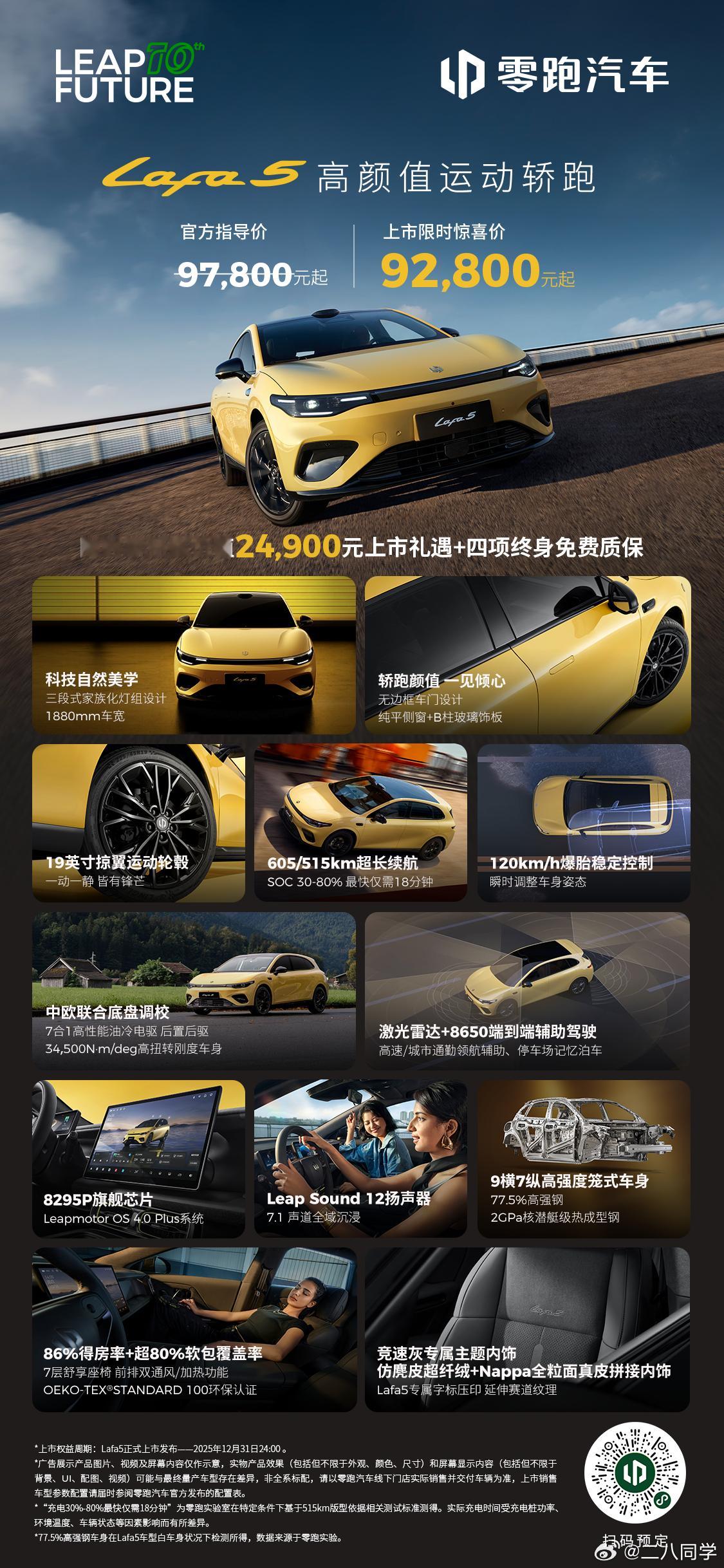 零跑Lafa5开启轿跑10万级时代零跑太猛了,太猛了年轻人首选Lafa5限时9.