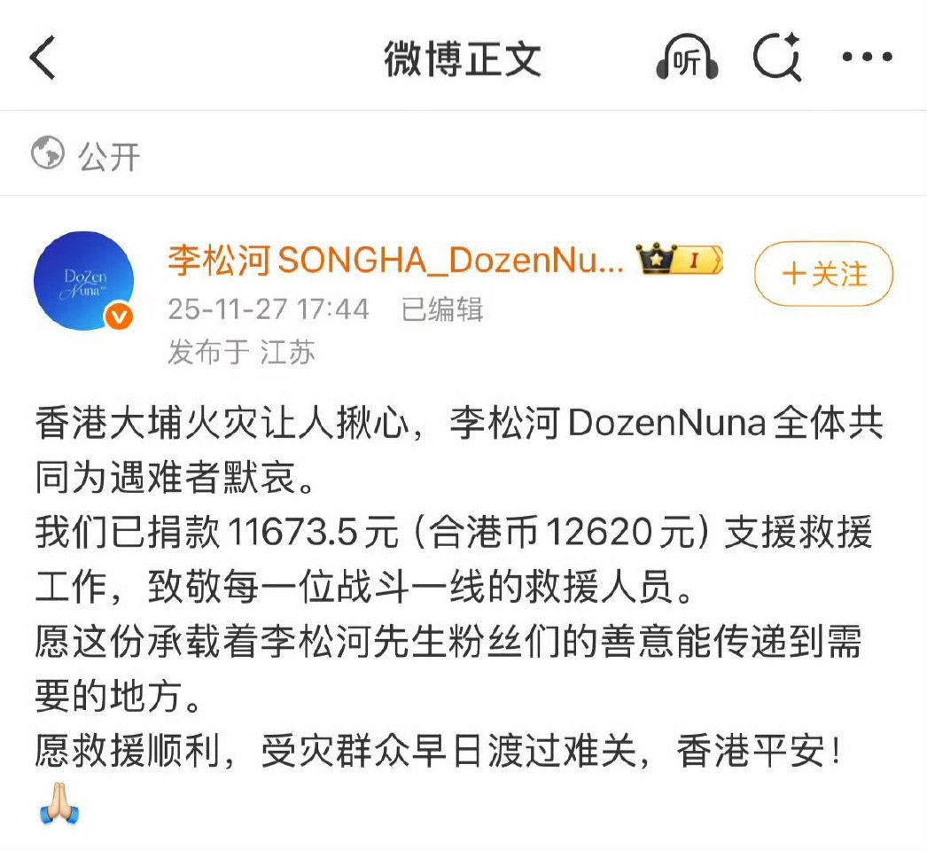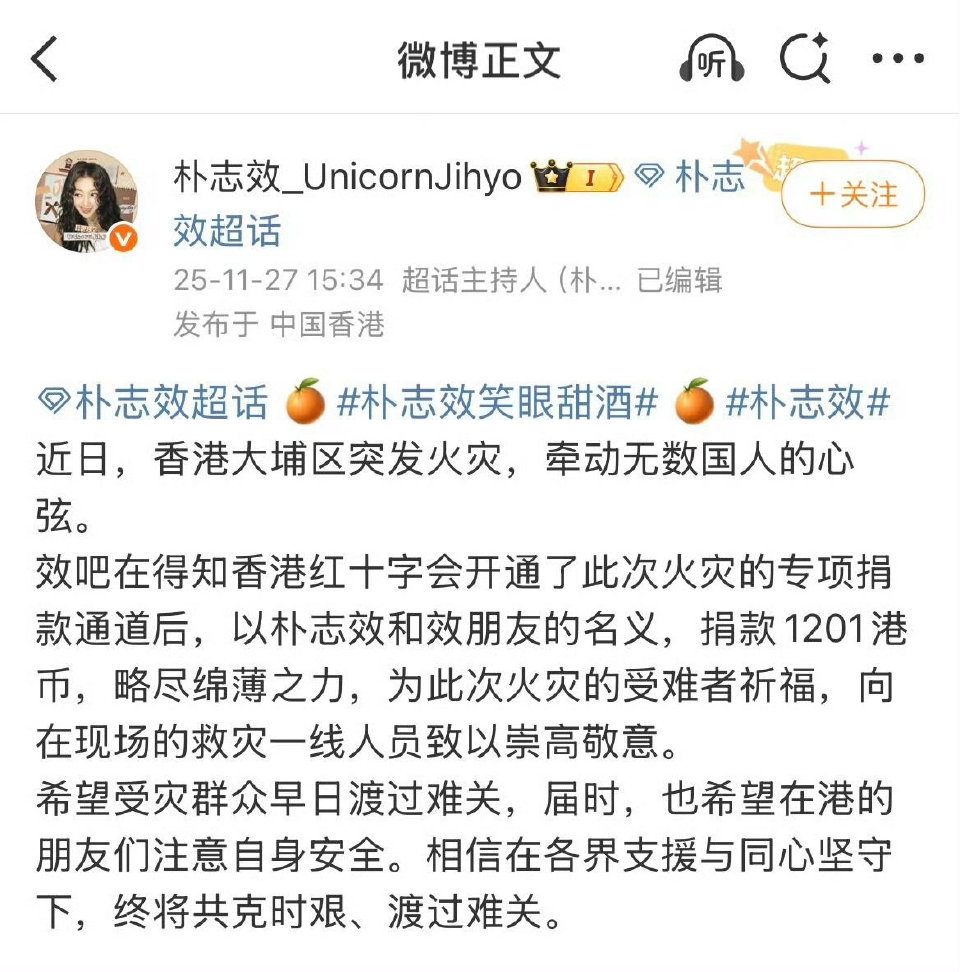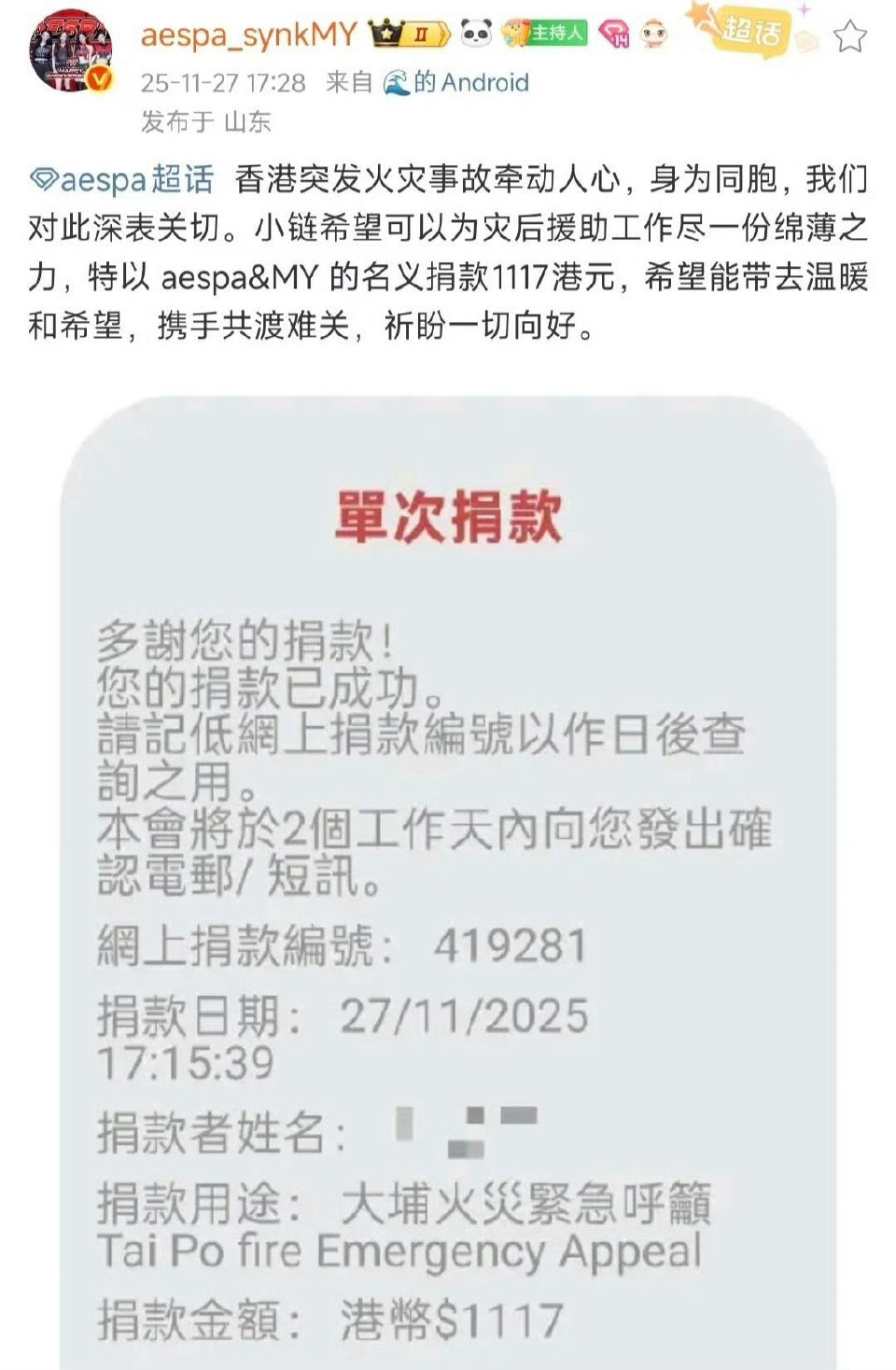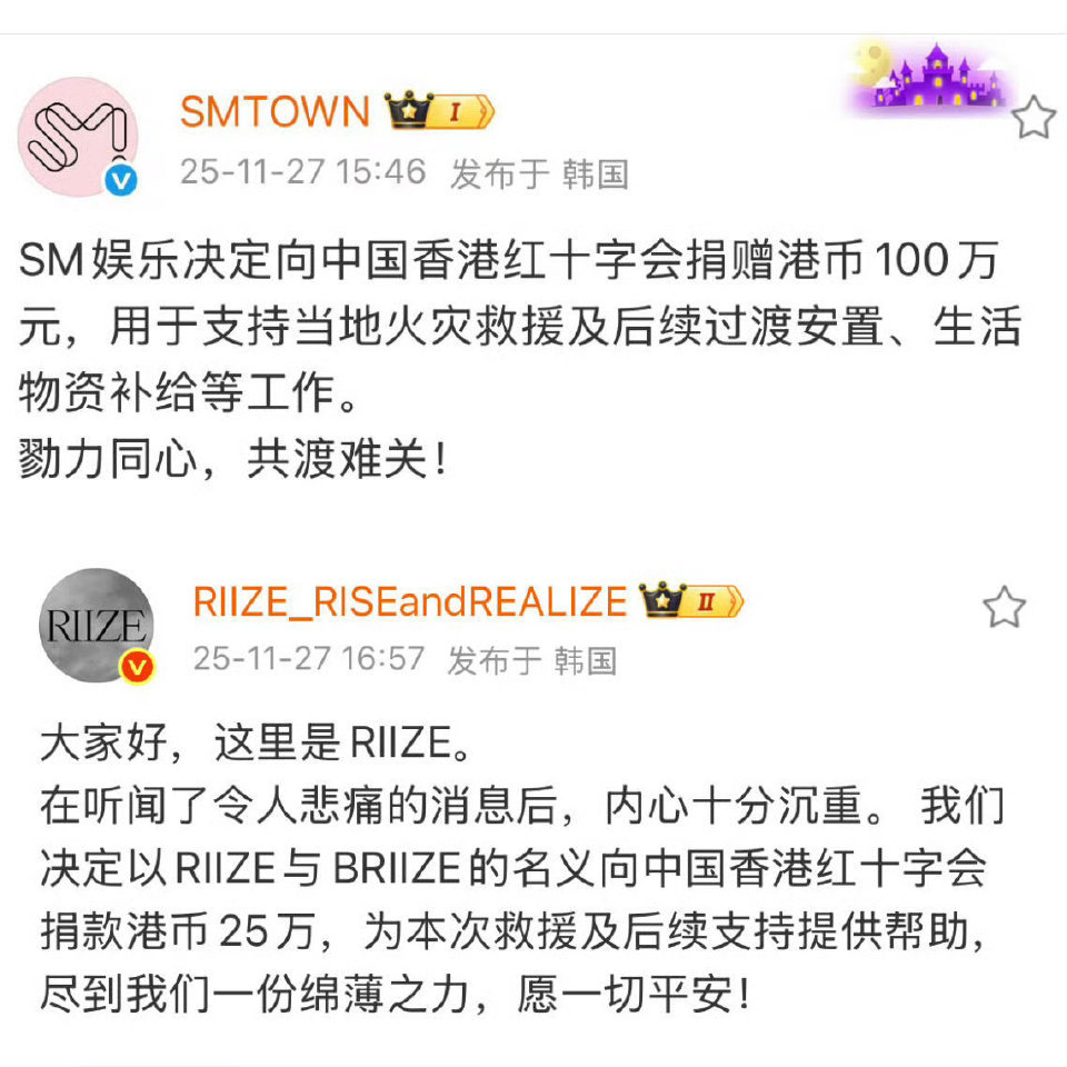 多位韩国艺人为香港捐款多名韩国艺人为香港捐款 韩娱公司&艺人&粉丝为此次香港火灾捐款汇总公司SM:100万港币组合Riize:25万港币粉丝朴志效大吧:1201港币将太郎大吧:2200港币柳智敏大吧:10000港币李翰飞粉丝:1100港币aespa大吧:1117港币宁艺卓大吧:1023港币李松河粉丝:12620港币黄铉辰大吧:2000港币 朴成训大吧微博+红十字会: 3200+港币 朴元彬大吧及站子:3200港币朴综星大吧:2000港币 Giselle大吧:1030港币 章昊站子及粉丝合计10000+西村力大吧:1209港币Nctwish站子:1000元 宋银硕大吧:3190港币 吴是温大吧:1511元
