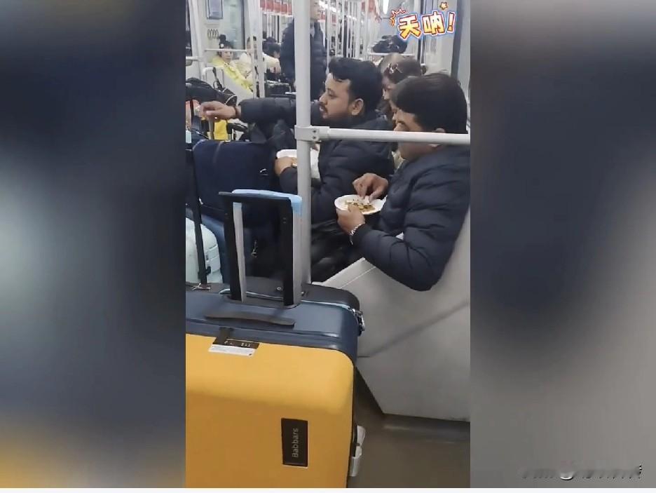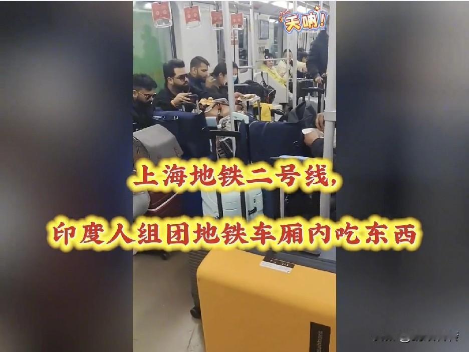 上海地铁2号线,一群印度人兴致勃勃的在车厢内聚餐,而且是这种手抓式的。说实在,确实有碍观瞻。不知道上海地铁是否有相关规定,在车厢内不能进食。即使没有相关规定。一群印度人在车厢里聚餐式的进食。是对其他乘客的不尊重。尤其印度人身上的味道比较大,吃的食物味道也比较浓。会给其他乘客造成不适的感觉。地铁管理人员应该提醒这些印度人。不知道是何原因,我们的管理人员哪去了,这算不算我们的通病,在对待外国人时。总是不自觉的网开一面。或者是心里没有底气。设身处地的想一想,假如是我们在国外的地铁上如此进食会有怎样的待遇,肯定会被管理员赶出车厢,甚至被处罚。远的不说,假如我们在香港的地铁上进食又会怎样,不用说肯定会遭到香港人大张旗鼓的声讨和怒斥。那怎么到了国内的地铁上就没有人敢管了呢,在咱们的地盘上,老外我行我素。这个问题真的值得深思。上海地铁
