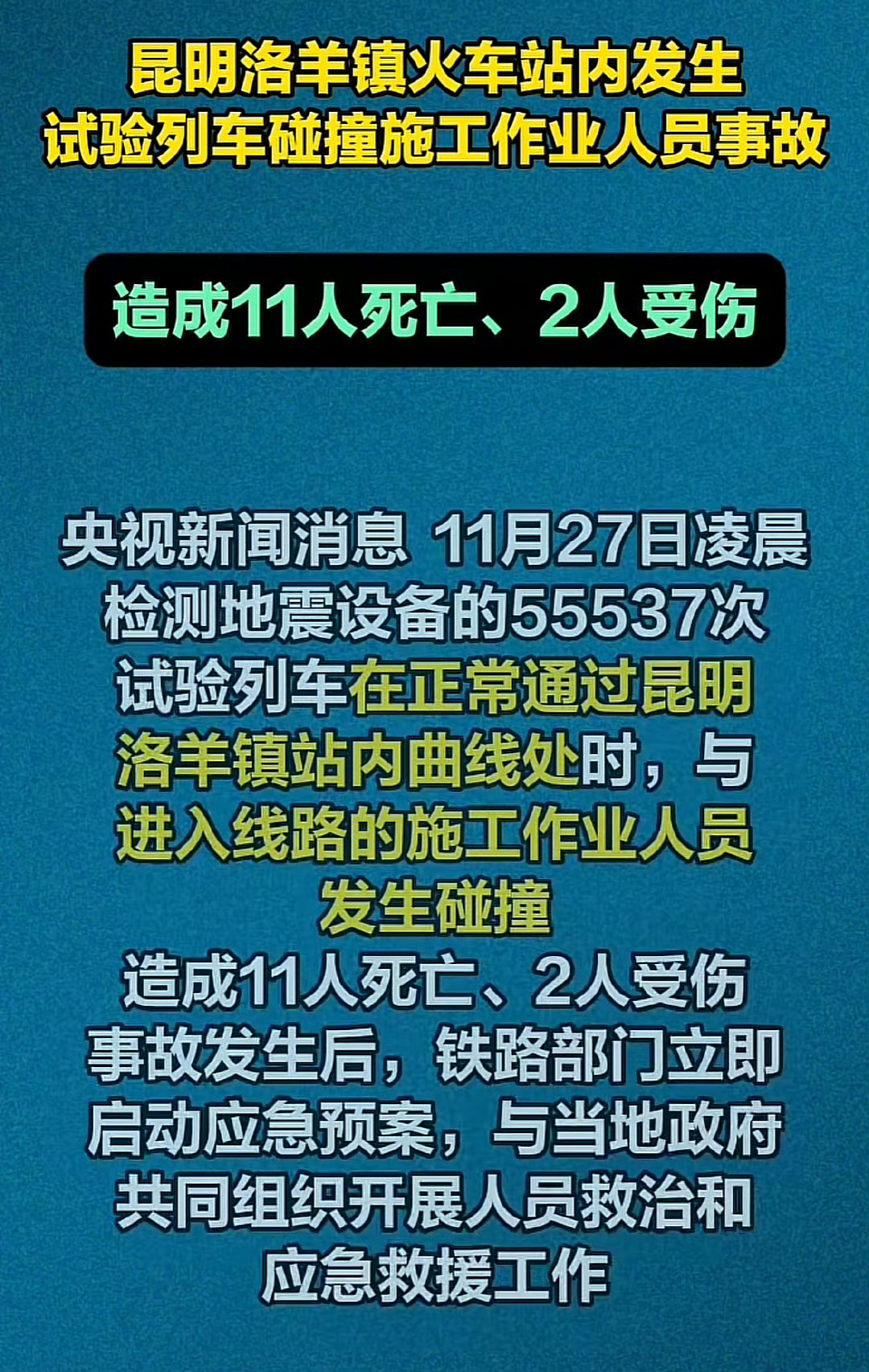昆明一火车站试验列车撞人致11死到底在干什么,11个家庭啊,凌晨还在干活,肯定是