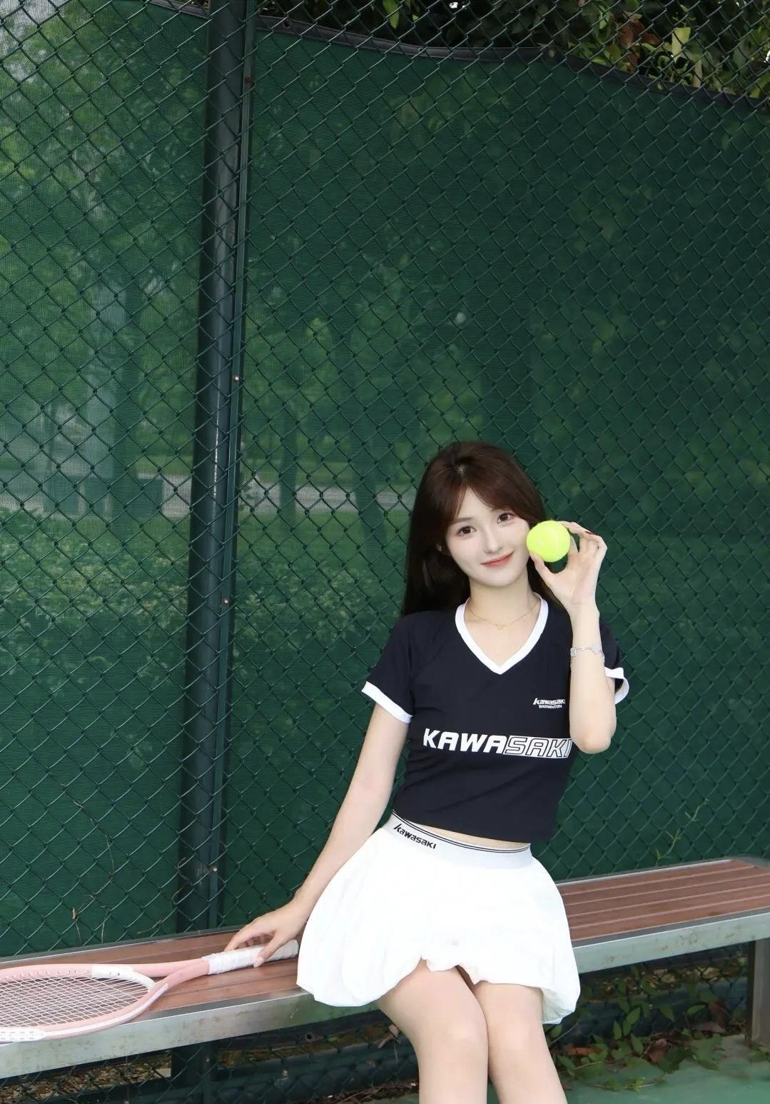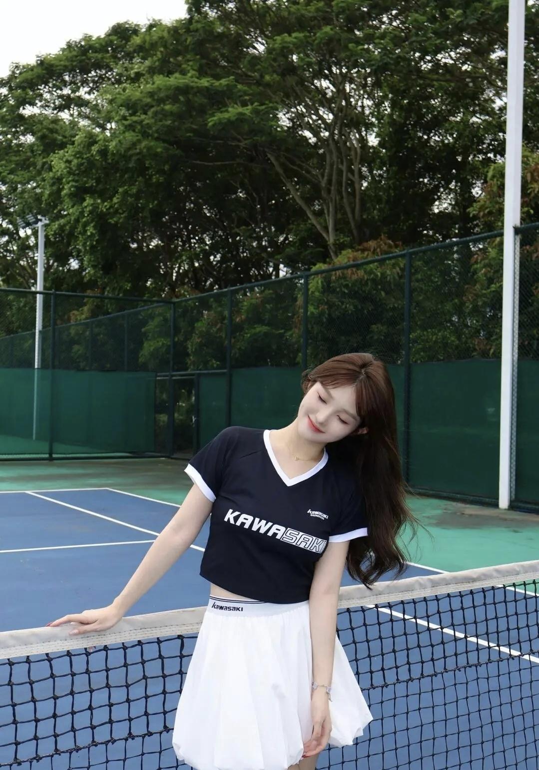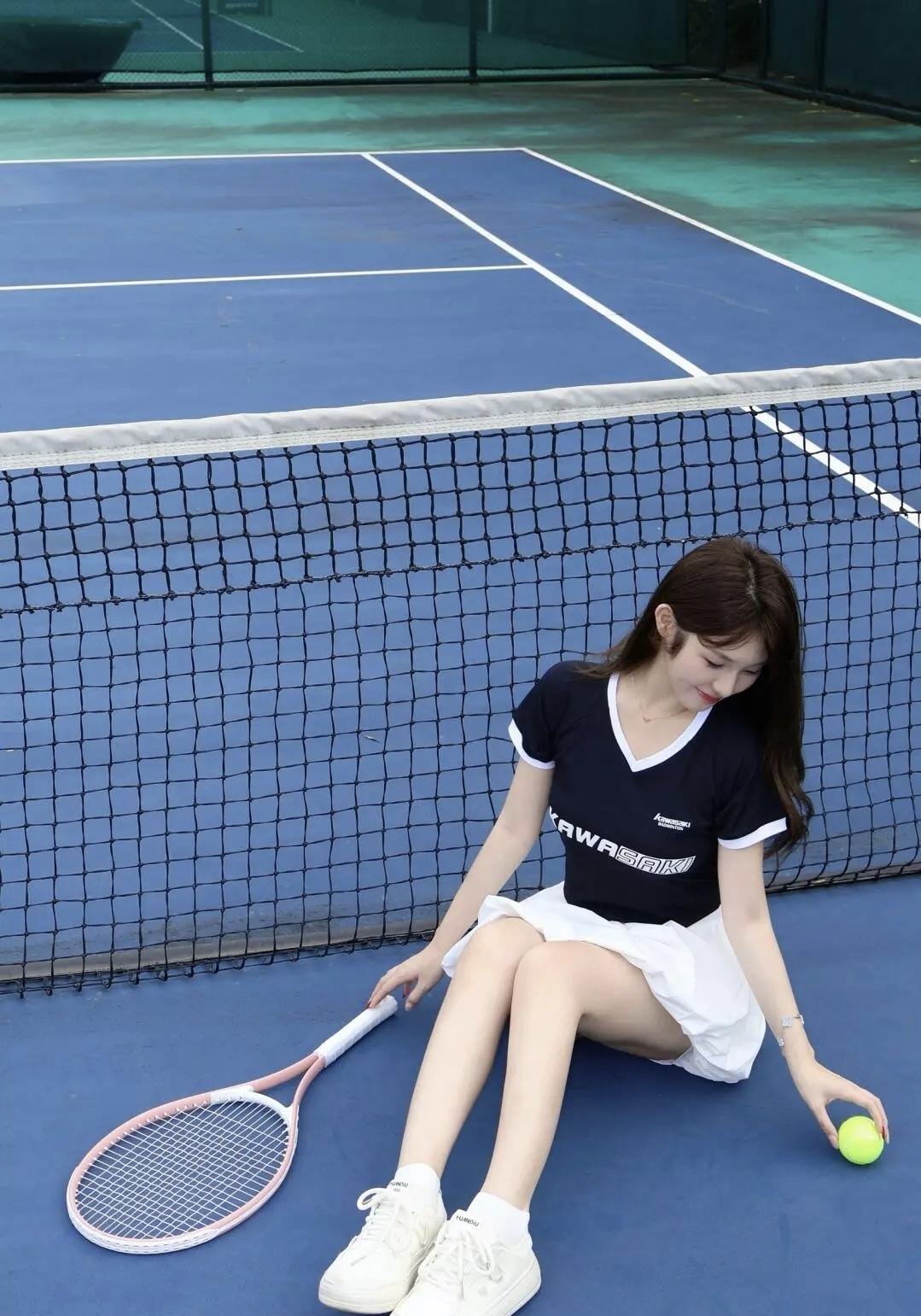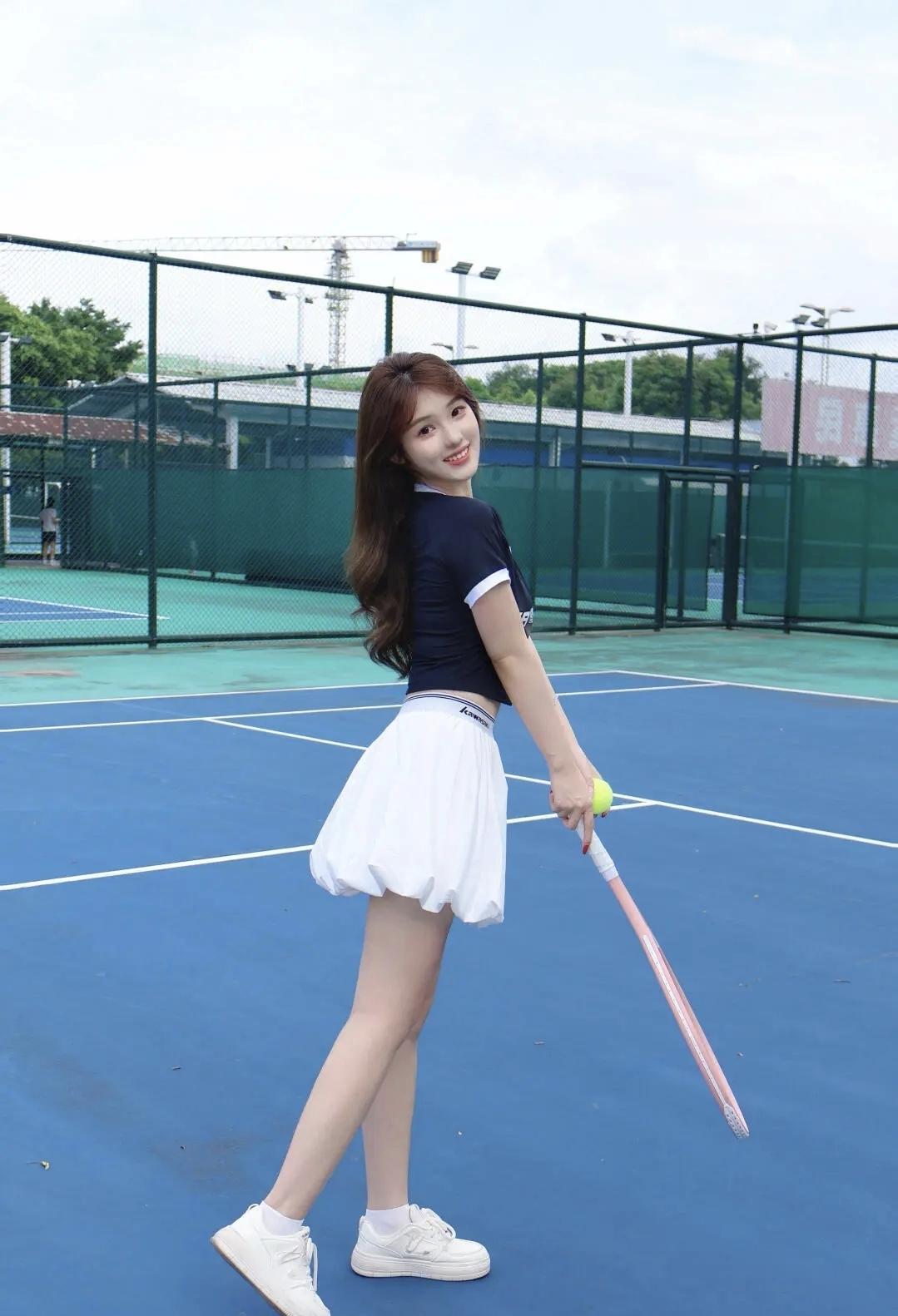 网球场上的松弛感是风给的 藏在V领短袖和裙摆里的夏意 连球拍都沾了点甜~