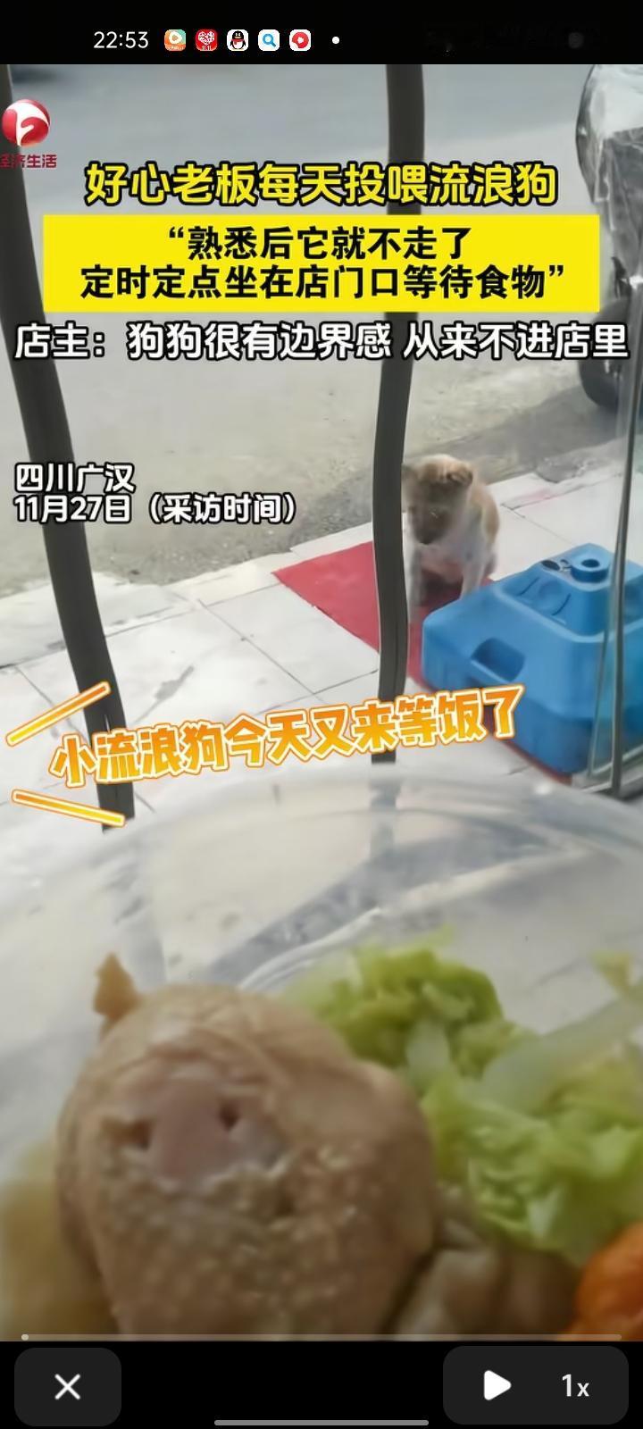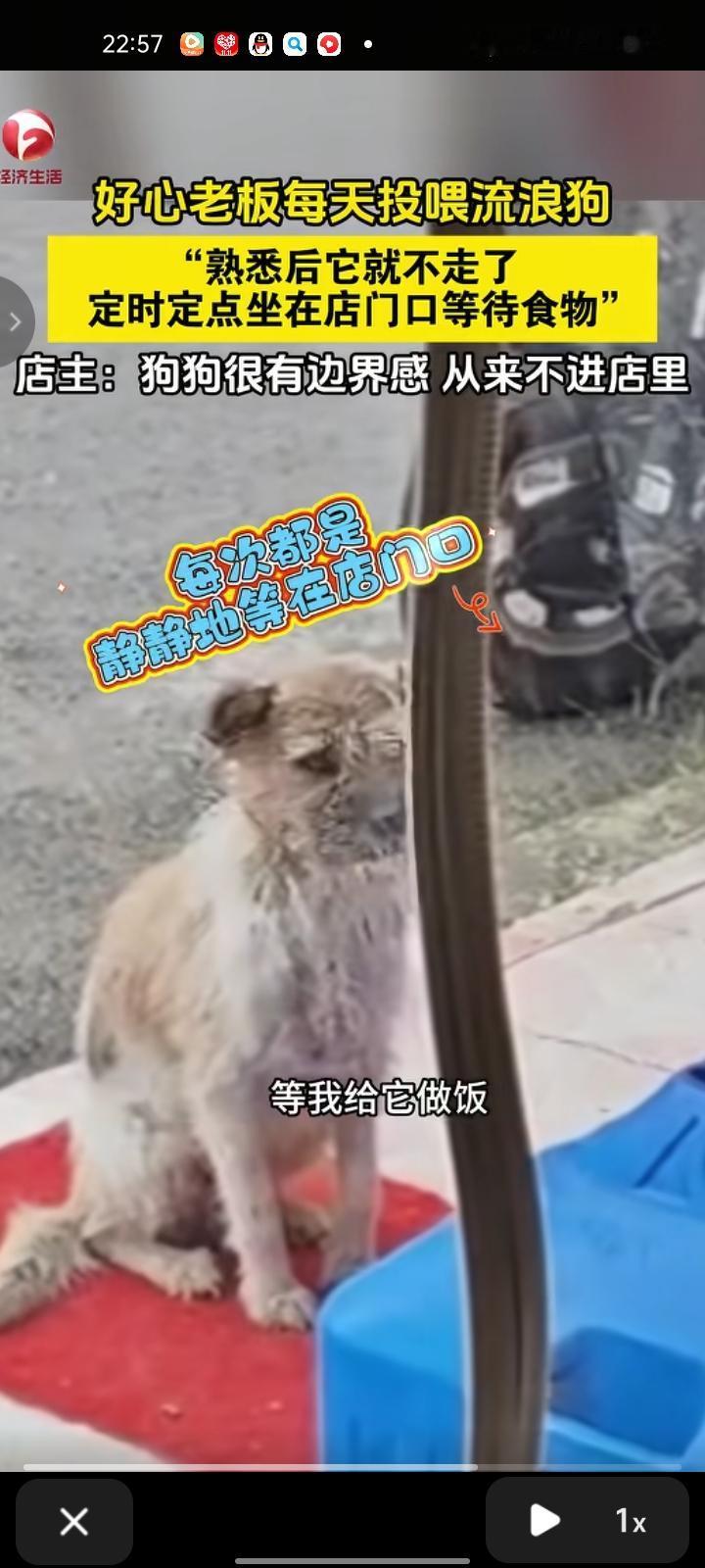 11月26日,德阳广汉市。老板每天投喂流浪狗,一开始流浪狗不敢吃,慢慢熟悉后它就不走了,就睡在店门口等食物,每天早上它基本是在门口垫子上坐着。老板表示,这只流浪狗非常有边界感,从来不仅店里,应该是在流浪过程中受了很重的伤,因为它的额头和脖子都是没有毛的,胆子也很小,稍微一抬头尾巴就夹起来了。“这只流浪狗不只是一个人在投喂,有很多好心人都在关注它,定时定点过来投喂”