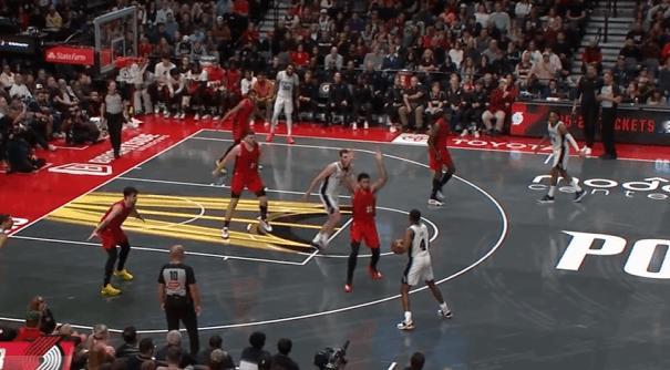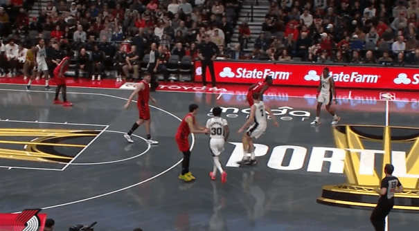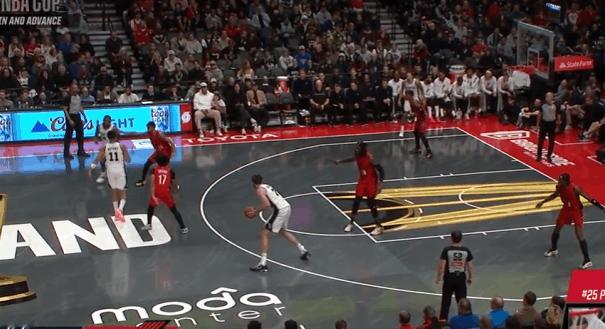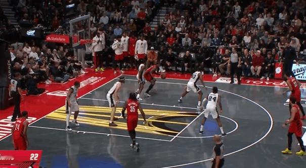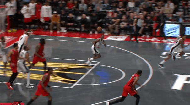 马刺观察:近5战4胜,福克斯28.6+7+4+2挑起大梁在文班受伤倒下后,马刺并没有就此沉沦,反而在最近5场比赛中打出了4胜1负的优秀战绩。在文班受伤期间,福克斯挑起了球队大梁,近5场比赛用50%+41.2%的两项命中率打出了28.6+7+4+2断的出色发挥。在今天对阵开拓者的NBA杯赛中更是爆砍37分,外加8助攻6篮板3抢断,率队取胜。图1借助科内特中线的超高位置掩护加速直杀篮下,将卡马拉摆脱在身后之后降速观察防守,行进到篮下后迂回后佯装“回马枪”上篮,实则吸引二人注意力后内传内给篮下的科内特。图2进攻理念上与前面回合有异曲同工之处。中线位置就直接发起“Horns”系列战术,充分发挥福克斯的速度优势。福克斯左路突破吸引罗威防守注意力后迅速回给前面设置“Touch Screen”后便立即顺下向篮下切入的科内特,打穿开拓者篮下。图3科内特高位拿球发起的“Middle Zoom”,卡布设置无球掩护帮助福克斯点到夏普后直接“Slip”,福克斯佯装上前衔接与科内特的手递手配合,实则反跑篮下,摆脱夏普后接科内特的击地球领人后立即起身中投,稳稳命中。图4转换进攻要到乐福错位迅速指挥队友拉开后迅速启动右路突破,直杀篮下急停中投躲避罗威协防。图5呼叫尚帕尼掩护点名乐福未果后,借助队友掩护延阻格兰特后迅速启动左路突破,随后立即胯下拉回晃飞格兰特后衔接持球三分。图6推过半场后抓早期进攻立即发动“Double Drag”左路突破直杀篮下,挡拆行进间急停,追防的格兰特刹不住车,福克斯再衔接变向右手起球撤步中投,以获取最大化的投篮空间,中投稳稳命中。图7弱侧接应和科内特发动挡拆发起第二波进攻,借助科内特的掩护延阻卡马拉后,挡拆行进间立即出手后手合球急停中投,直接打击克林根沉退。除了进攻之外福克斯在防守端的表现同样有值得称赞之处,在近5场比赛福克斯场均能贡献1.8断,今天的比赛中就有3记抢断入账。比如这个图8回合,低位顶防格兰特,凭借着主动发力吸收对抗技巧,使得对抗并不明显吃亏,并在格兰特向中路转身合球起身终结的瞬间,找准时机精准将球切掉。随后图9在转换进攻中命中追身三分。马刺轻取开拓者