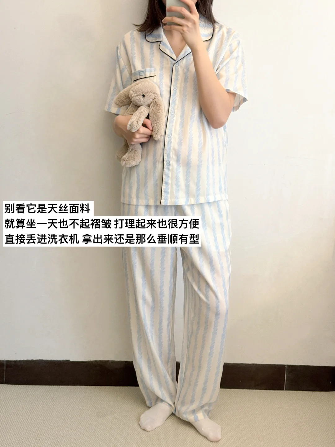 💛面料:78%兰精天丝,比市面大多数家居服的含量都高,穿身上比真丝柔软,比棉质的透气,不起球不起毛也不软塌;