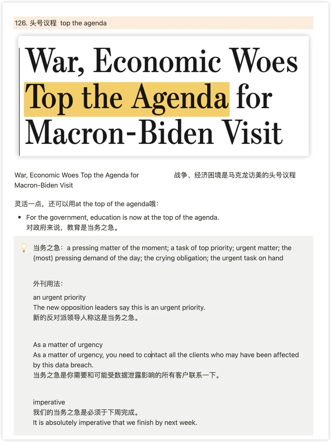 6. 头号议程 top the agenda