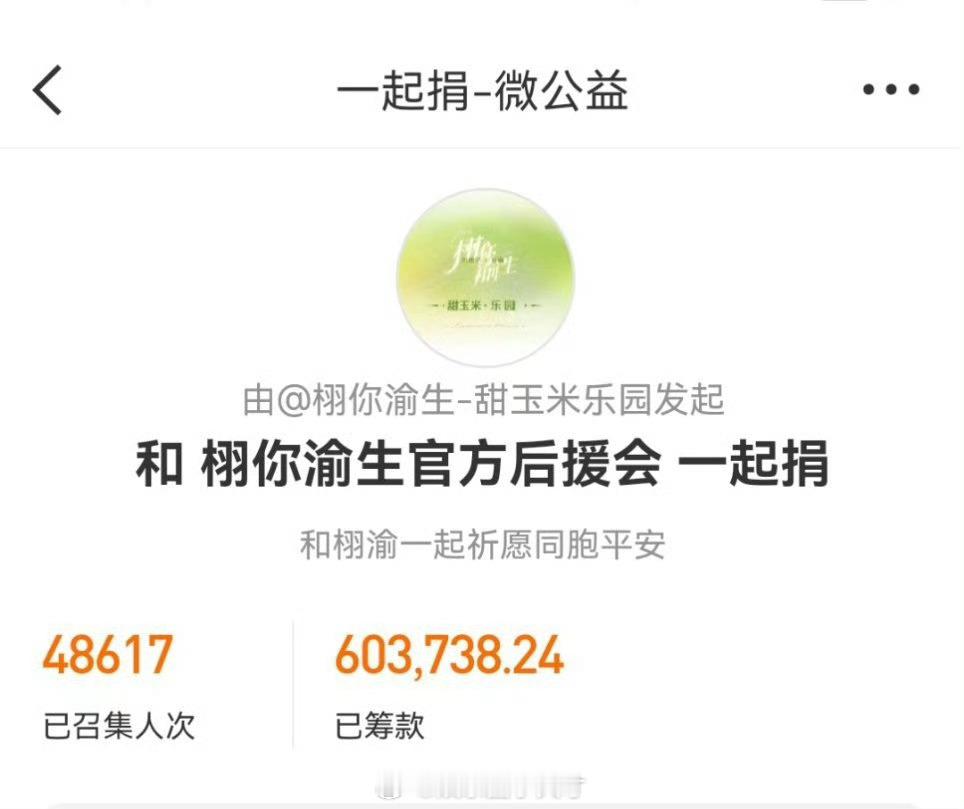 栩你渝生后援会捐款很感动,开团秒跟的甜玉米!这一刻田栩宁和梓渝在发光🌟🌟愿平安