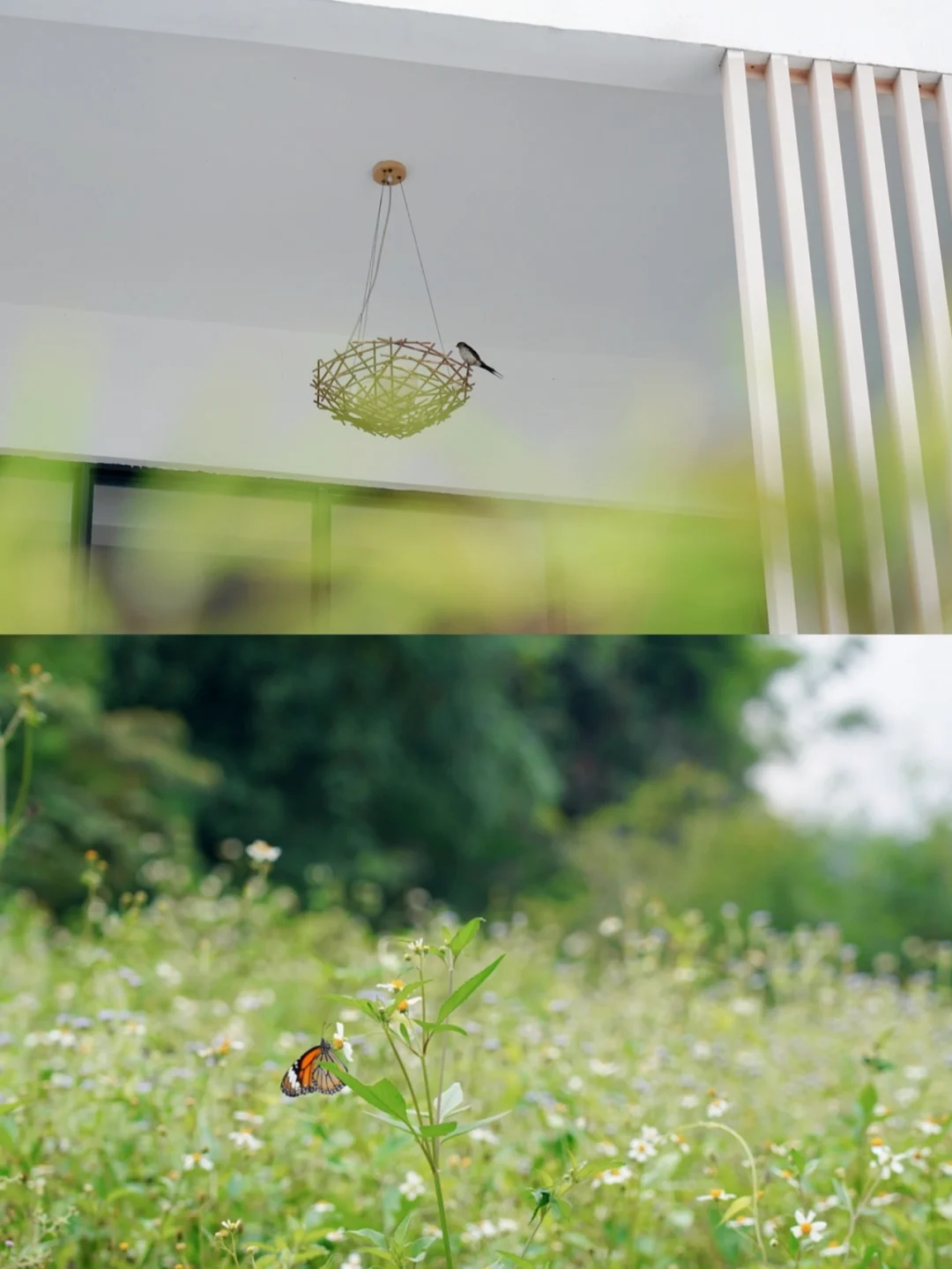 2、自然原生态的环境,阳台上的小燕子、花海里的小蝴蝶……简单的美好画面!