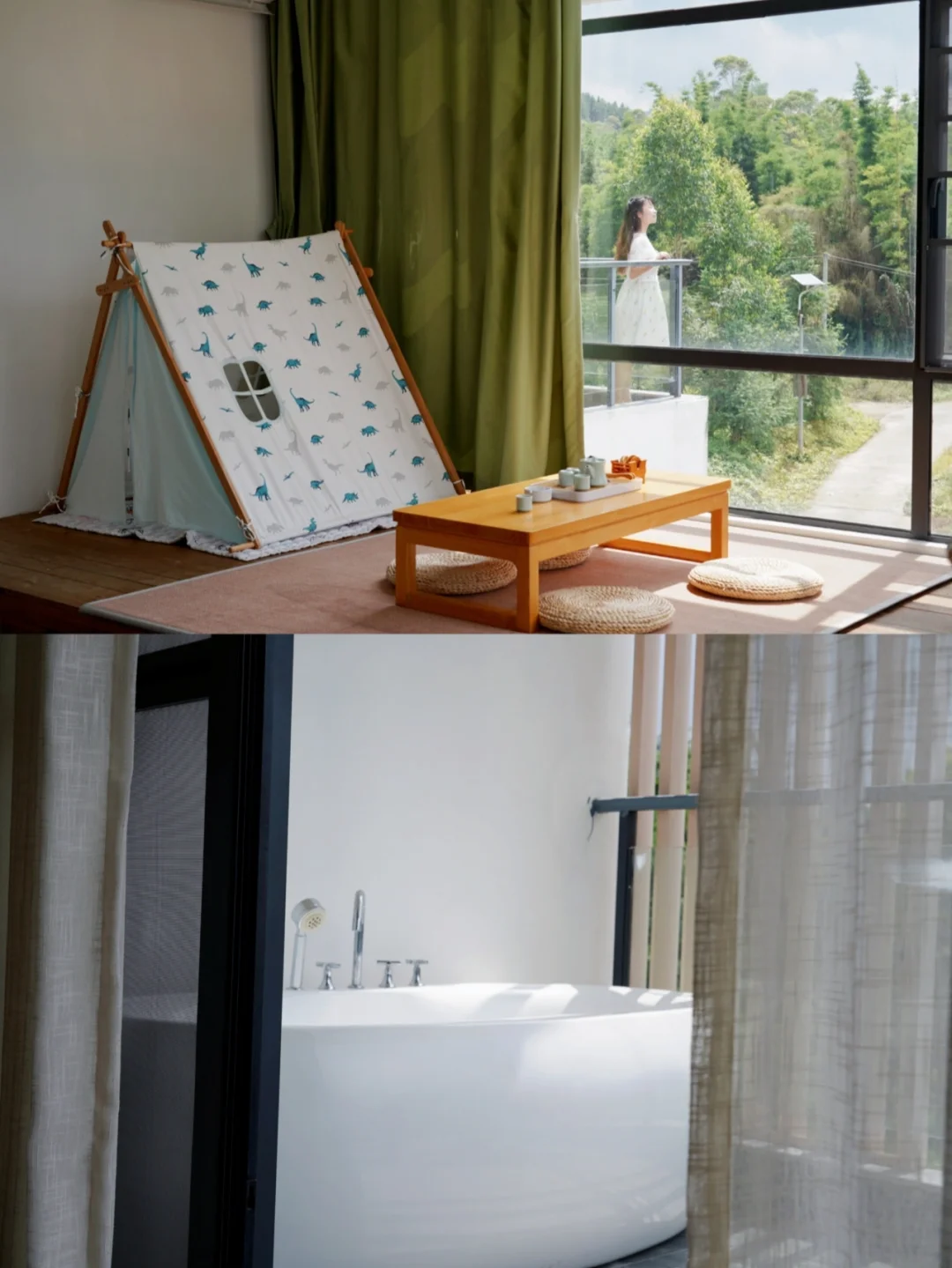 1、颇有童趣的房间及设施,很适合亲子度假,套房的大客厅里有小木马、帐篷、茶桌、投影……公共区域的草坪、烧烤、泳池……,周末两天都能安排得满满哒!