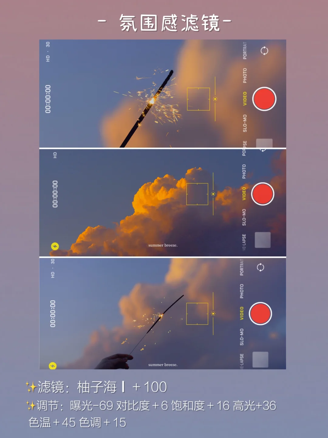 调节:曝光-69,对比度+6,饱和度+16,色温+45,