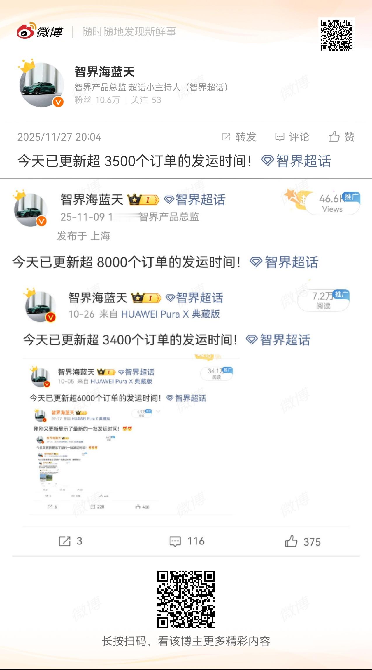 11月期间,华为乾崑 辅助驾驶累计行驶5.6亿公里,相当于绕地球1.4万圈;辅
