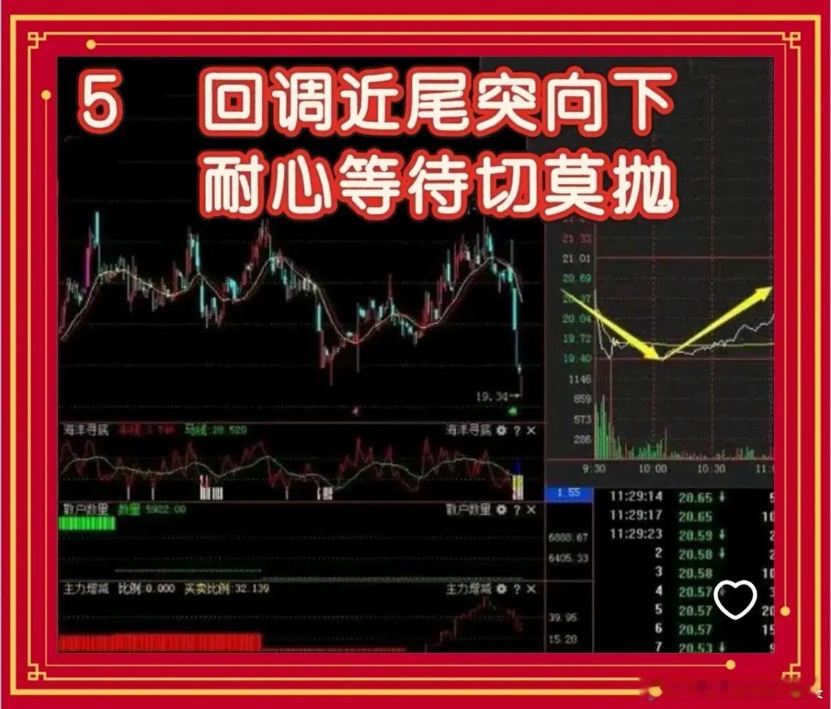 七口诀详解“主力坐庄”流程第一条 不冲高不卖,不跳水不买,横盘不交易。股价急速拉升却无量,别恋战;跳水急跌且带量,不破前低可考虑低吸;区间振幅如“织布机”般缩窄,宜多看少动,频繁做短线只会把手续费送给券商。第二条 买阴不买阳,卖阳不卖阴,逆市操作方显本事。上升趋势里,阴线回踩均线或筹码峰时买入,阳线急拉偏离五日均线时减仓;下降通道则反向操作,阳线回抽时高卖,阴线恐慌时低买,只做情绪的对手盘。第三条 高低盘整,再等一等。高位横盘却不下跌,别臆想突破,等放量创新高或出现断头铡刀再确认方向;低位横盘却不上涨,别提前抄底,等向下挖坑或放量长阳再行动,宁可错过,不抢左侧交易。第四条 高位横盘再冲高,抓住时机赶快抛;低位横盘又新低,重仓买入好时机。高位平台二次冲高量价背离,分时图出现“头肩顶”或“M头”就赶紧甩货;低位平台突然放量砸出新低,筹码峰单峰密集,往往是主力最后一次挖坑,砸盘就是送机会。第五条 回调近尾突向下,耐心等待别抛售。上升中继末端,最后砸盘量能缩至地量,筹码峰未松动,急跌是洗盘,要守住仓位;若筹码峰快速上移且放量破位,才是主力出货,要立即清仓。第六条 用筹码分布锁定主力坐庄三步曲:一吸筹——低位长期横盘,上方套牢峰逐步割肉,下方形成单峰密集,换手率温和放大;二洗盘——股价快速下杀再拉回,筹码峰始终不移,量能呈“凹”形,吓出浮筹;三拉升——突破筹码峰上沿,量能持续放大,峰体跟随股价上移,直至高位双峰或发散,行情接近尾声。第七条 年线看牛熊,五日线看节奏,十日线看强弱。年线由平拐头向下,熊市未结束,任何反弹都是逃命机会;年线向上,回踩年线或六十日线是黄金坑;五日乖离率大于五,十日线未跟上,短线必然回调;十日线不破,中线可持有;放量跌破十日线,降低仓位观望。以上七句口诀,将“位置、方向、筹码、量价、均线、情绪”六要素一网打尽,背熟用好,能少走三年弯路。兄弟们点赞,评论➕关注就是对莎莎最大的支持