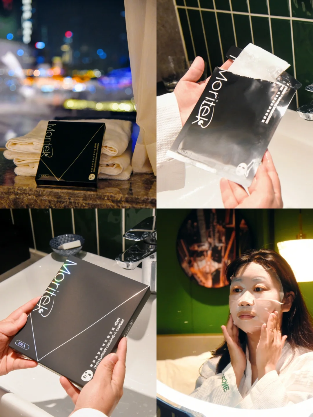 一开始准备来重庆时,就想起了前几天看到的重庆途湾酒店。因为途湾,旅途中的港湾,感觉上就很温馨! 再加上酒店整体是以轻复古为设计基调,墨绿与橙色的交叉使用,使得整个空间既富有高级感又不失时尚活力。 而最让我喜欢的,是那面向渝中半岛的宽大玻璃窗。待夜色降临,灯火四起时,就能在温馨惬意的房间内 观赏城市天际线与山城川江水的霓虹异彩。 面对着如此旖旎江景,安逸的浸泡在浴缸中,怎么能少了一片Moritek 72hours冷白皮面膜呢!晚上舒舒服服的敷上一片,第二天清早就能白上3度的美美出门拍照去了!
